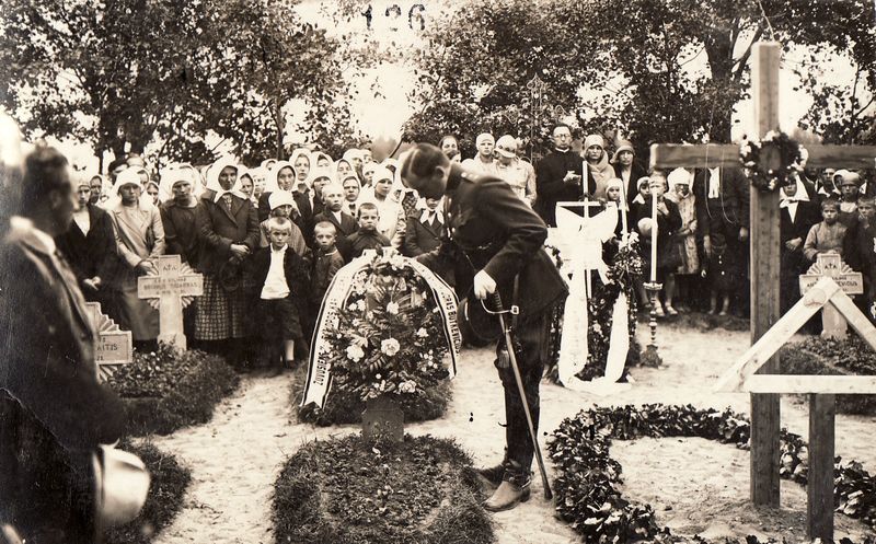 1930 metais Liūdynėje vainiką deda Algirdo pulko kuopos vadas majoras A. Butkevičius.