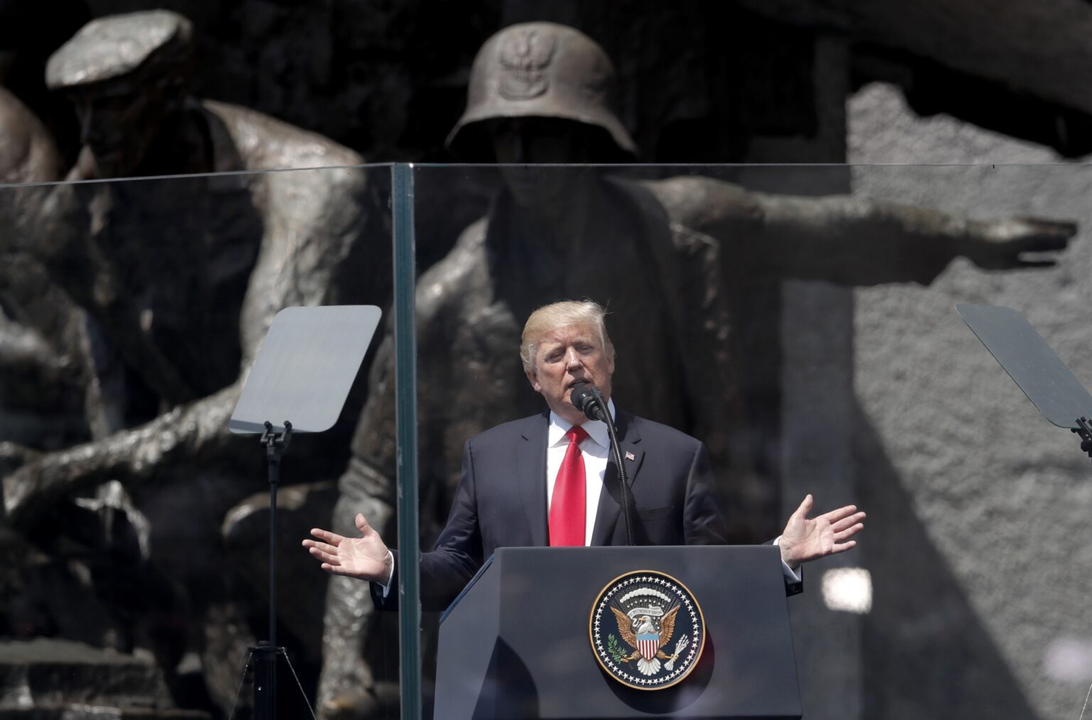 Amerikos prezidentas Donaldas Trumpas, sakydamas kalbą Varšuvoje, sukritikavo Rusiją dėl jos veiksmų Ukrainoje, taip pat dėl Sirijos bei Irano rėmimo.
