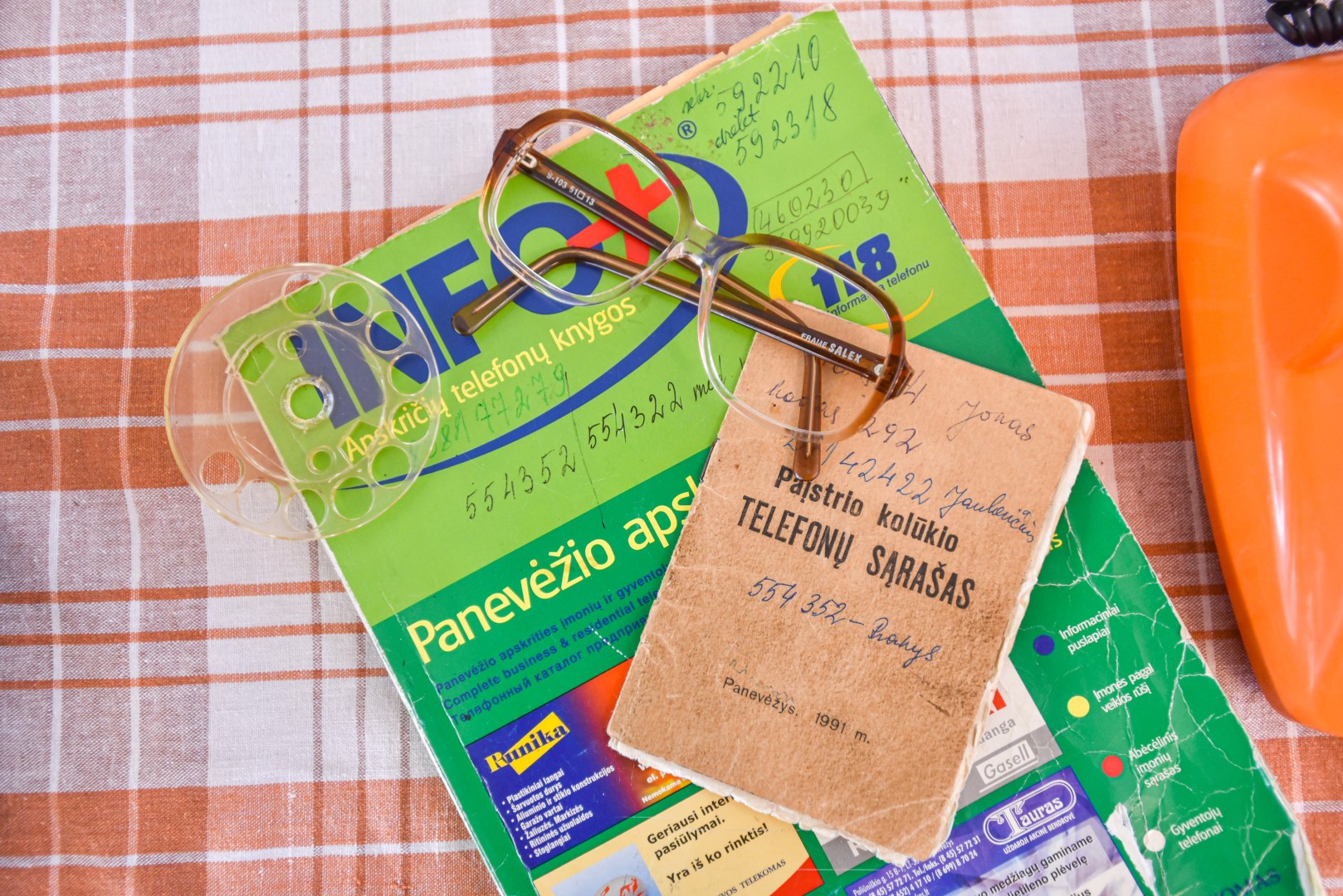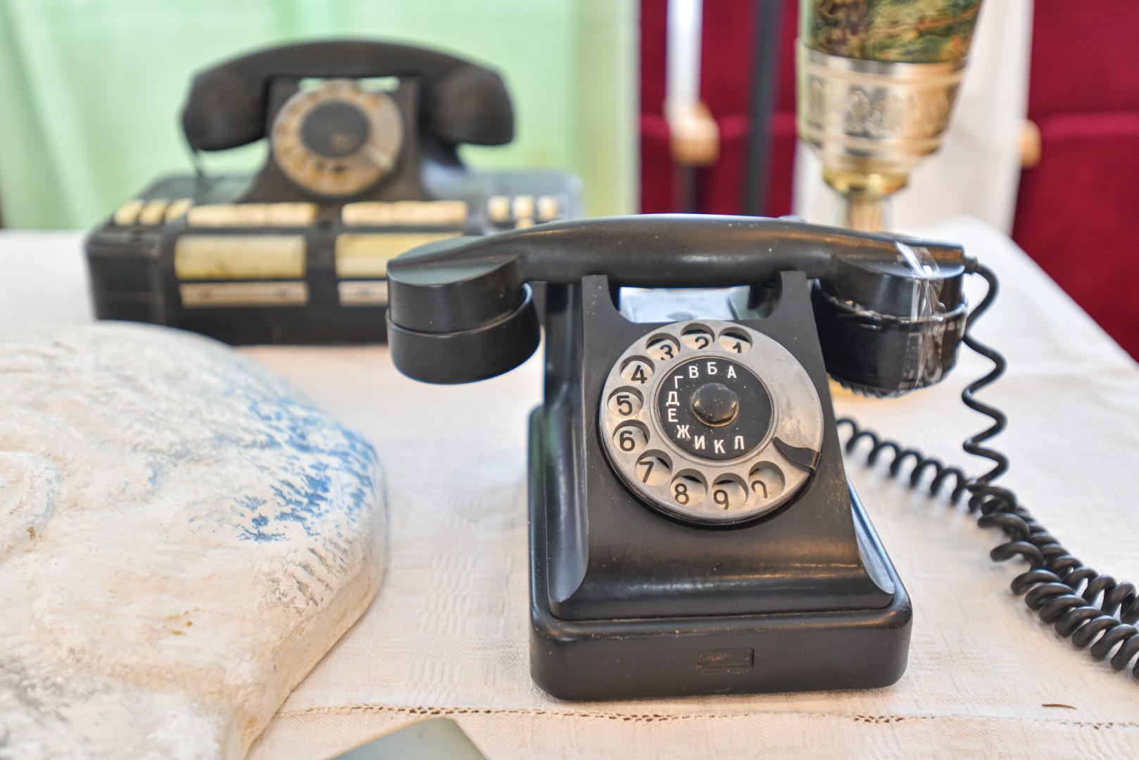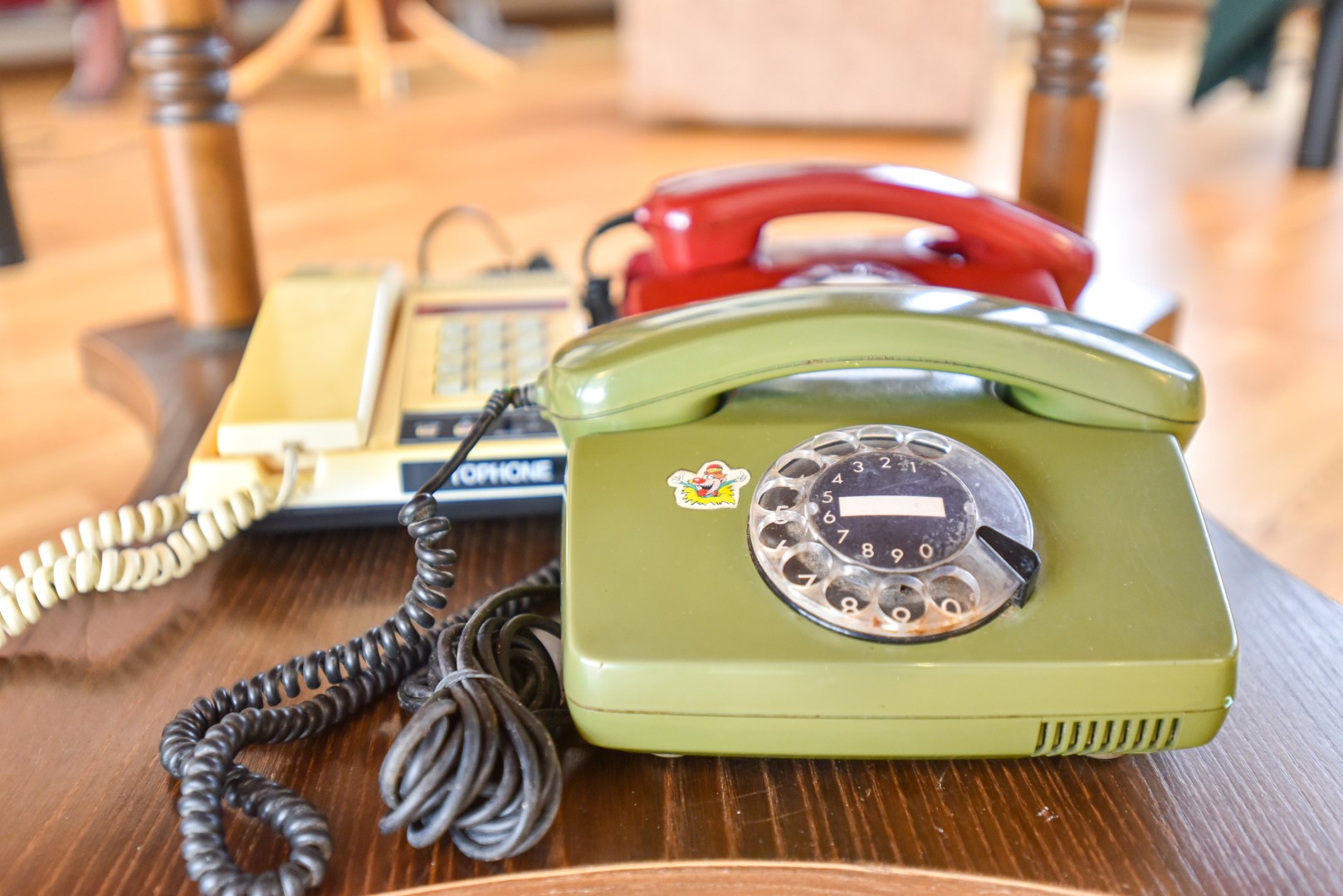 Bene vieną seniausių ir įdomiausių eksponatų parodai atnešė Jordana Javtokaitė. Manoma, kad jos diskinis telefonas su skaičiais ir rusiškomis raidėmis ant sukamo rato pagamintas apie 1950-uosius. J. Javtokaitės vyras kolekcionuoja senus daiktus, o šis telefonas buvo jo mamos.