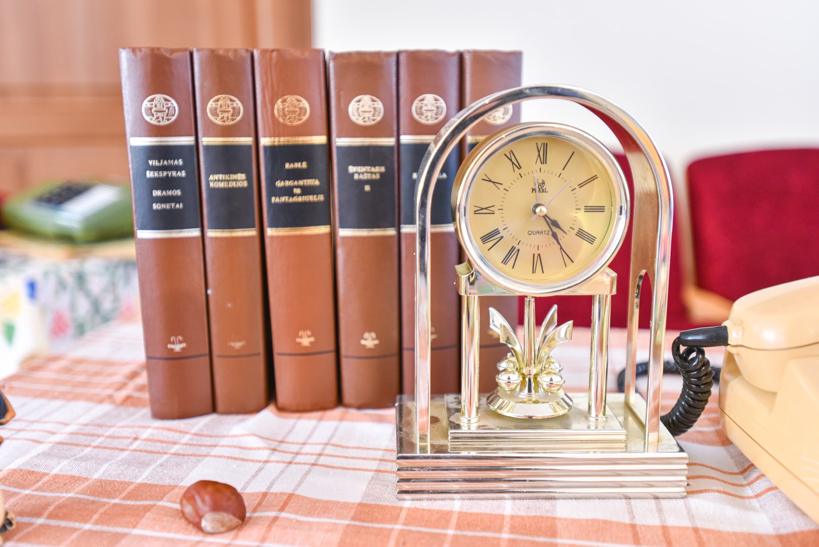 Parodoje yra ir daugiau įdomybių. Ant vieno telefono galima išvysti sovietinį kokybės ženklą. Tiesa, jis nėra labai senas – maždaug sovietmečio pabaigos. Vieni diskiniai telefonai pastatomi, yra ir kabinamų ant sienos, mygtukinių, net neaišku, kur naudotų – galbūt dispečerinėse. D. Kiršgalvienė pasakoja, kad jos kaimynas šį rudenį bevaikščiodamas miške aptiko krūvą išverstų išardytų senų telefonų, o tris gerus paėmė – žinojo, kad bus rengiama tokia paroda.