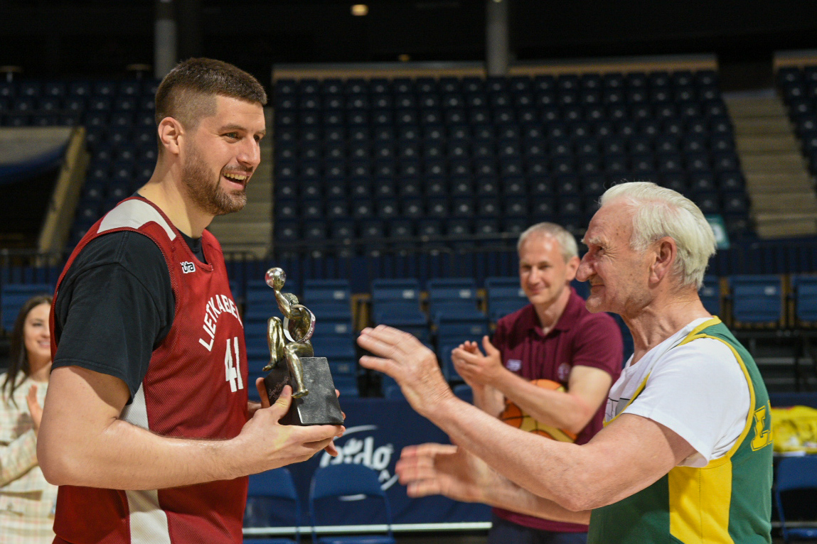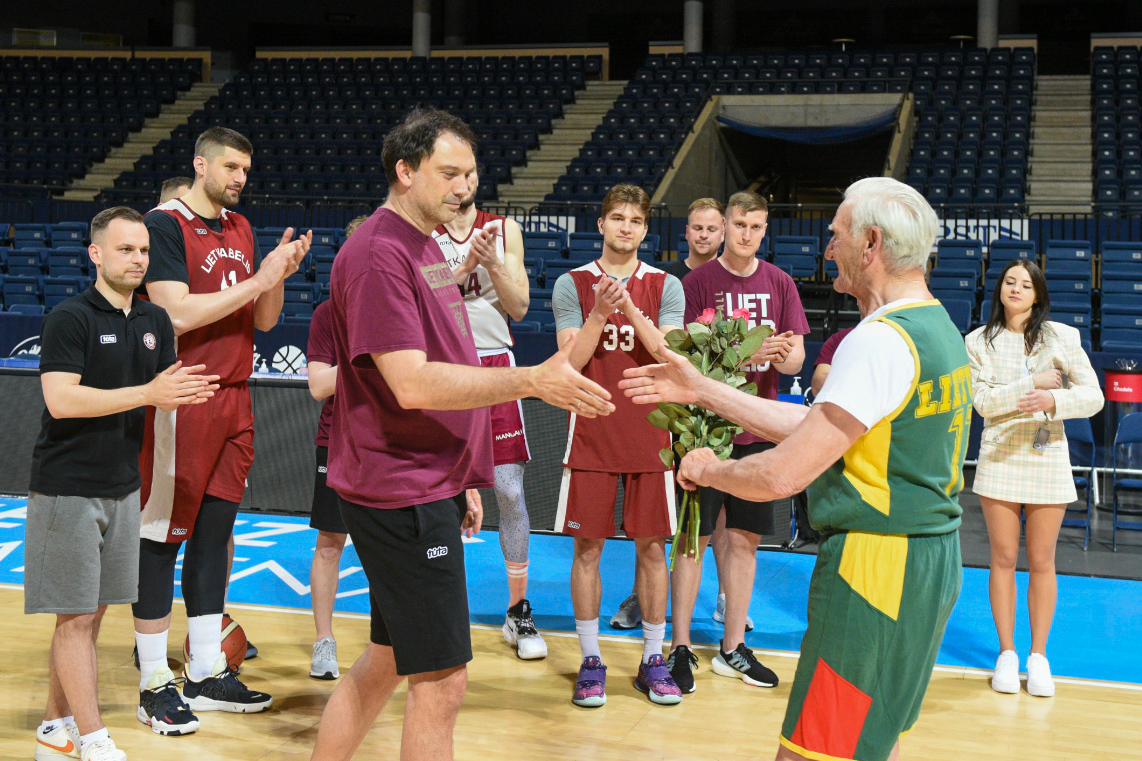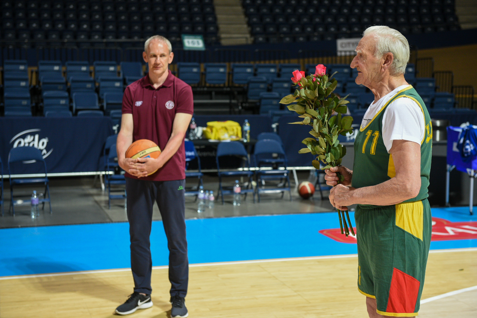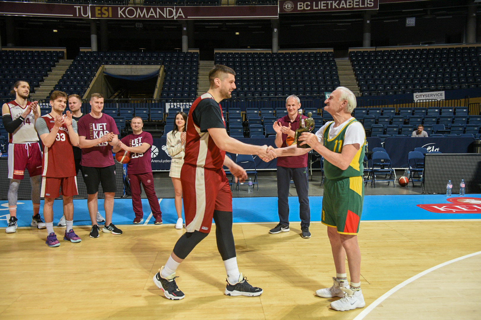 85-erių metų M. Gečas „Lietkabelio“ vyriausiajam treneriui Nenadui Čanakui įteikė rožių puokštę, o komandos vidurio puolėjui Džordže Gagičiui – atminimo statulėlę.