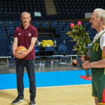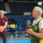 Vakar „Lietkabelio“ krepšininkų treniruotėje apsilankė visiems panevėžiečiams puikiai pažįstamas sporto veikėjas Marijonas Gečas.