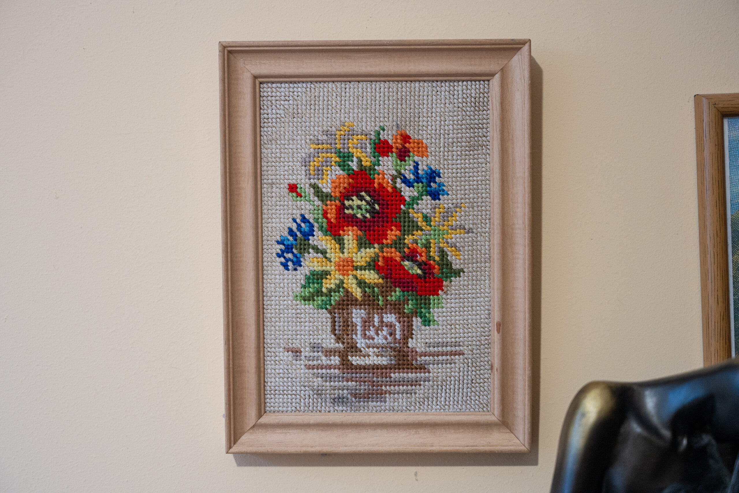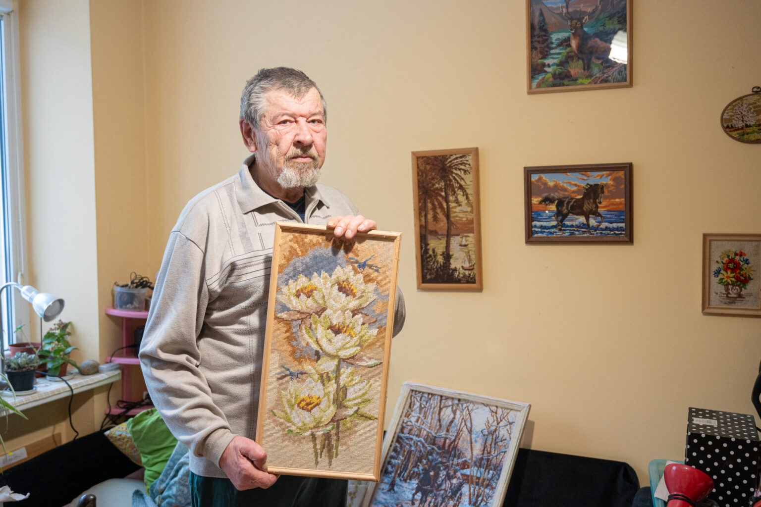 Anksčiau išsiuvinėtus darbus jis įrėmindavo į savo pagamintus rėmus. Dabar rėmus perka, nors ir šie – nepigūs.
