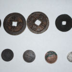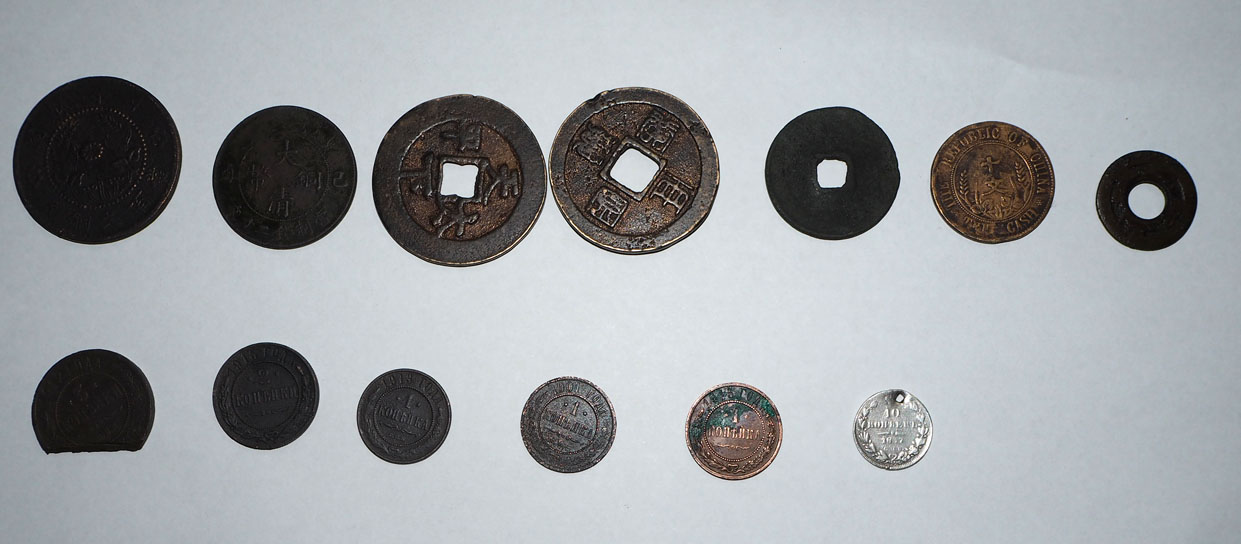 Preliminariais vertinimais sulaikyti strėlių antgaliai – rytietiški, XI-XIII a. Antikvariniai pinigai – varinės ir sidabrinės carinės XX a. pr. kapeikos ir kinų gamybos monetos.