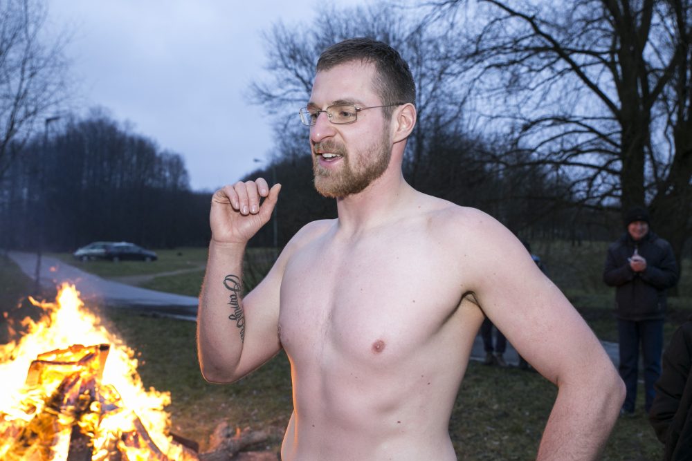Jis pats dėl savo amžiaus ledinėse maudynėse jau nebedalyvavo. Bet savo renginio dalyvius kvietė jas išbandyti ir po to sušilti prie laužo. Organizatorius juokėsi, kad krante įsiplieskusios liepsnos jau antrus metus iš eilės akcijoje sudalyvauti prikviečia ir ugniagesius.