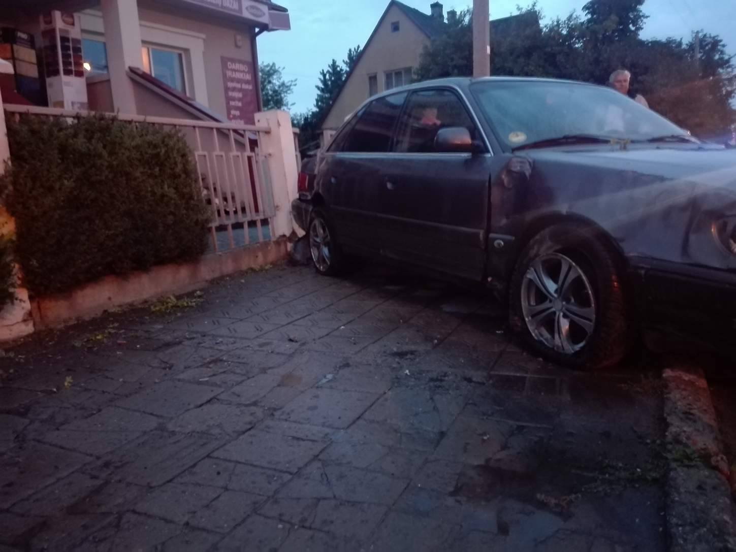 Dar viena avarija įvyko apie pusę devynių vakaro Nemuno g. 27-erių vyras, vairuodamas automobilį „Audi A6“, nepasirinkęs saugaus greičio ir nesuvaldęs automobilio, trenkėsi į tvorą. Liudininkų teigimu, automobilis dideliu greičiu važiavo link Klaipėdos gatvės, tačiau netoli žvejų parduotuvės automobilį sumėtė ir šis, išlėkęs į priešingą eismo juostą, trenkėsi į dažų parduotuvės tvorą.