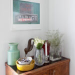 Bendroje pirmo aukšto patalpoje virtuvės ir poilsio erdves skiria valgomojo stalas ir kėdės. Šie su šeima keliauja toli gražu ne vienus metus. Net į Maltą, kur nuomojosi būstus, ji po poros gyvenimo metų iš Lietuvos atsisiuntė pilną konteinerį savo daiktų – tada vaikai pasijuto kaip namie. „Kai nusiperki gerą baldą, jis su tavimi gyvena visą gyvenimą. Šviestuvas, stalas, valgomojo kėdės su mumis keliauja visur. Sofoms jau 10 metų. Pakeičiau jų audinius, ir vėl kaip naujos. Geri daiktai tarnauja ilgai. Dar yra objektai, kuriuos renkame, pavyzdžiui, mano vyrui labai patinka šeštojo dešimtmečio baldai“, – kaip kuria namus, pasakoja moteris.