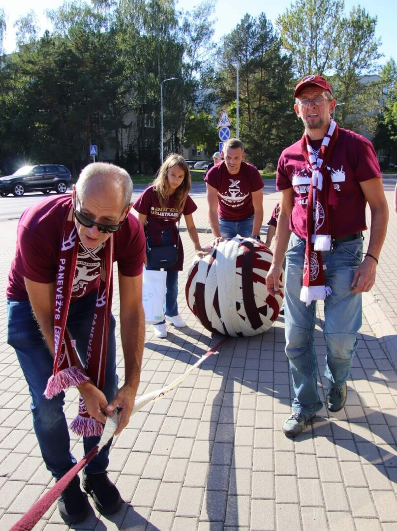 Krepšinio gerbėjai čia atvežė ir visos vasaros rezultatą – 1650 metrų ilgio, 12 cm pločio rankomis megztą „Lietkabelio“ spalvų bordinės ir baltos šaliką.