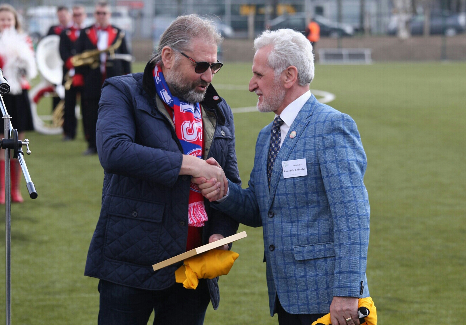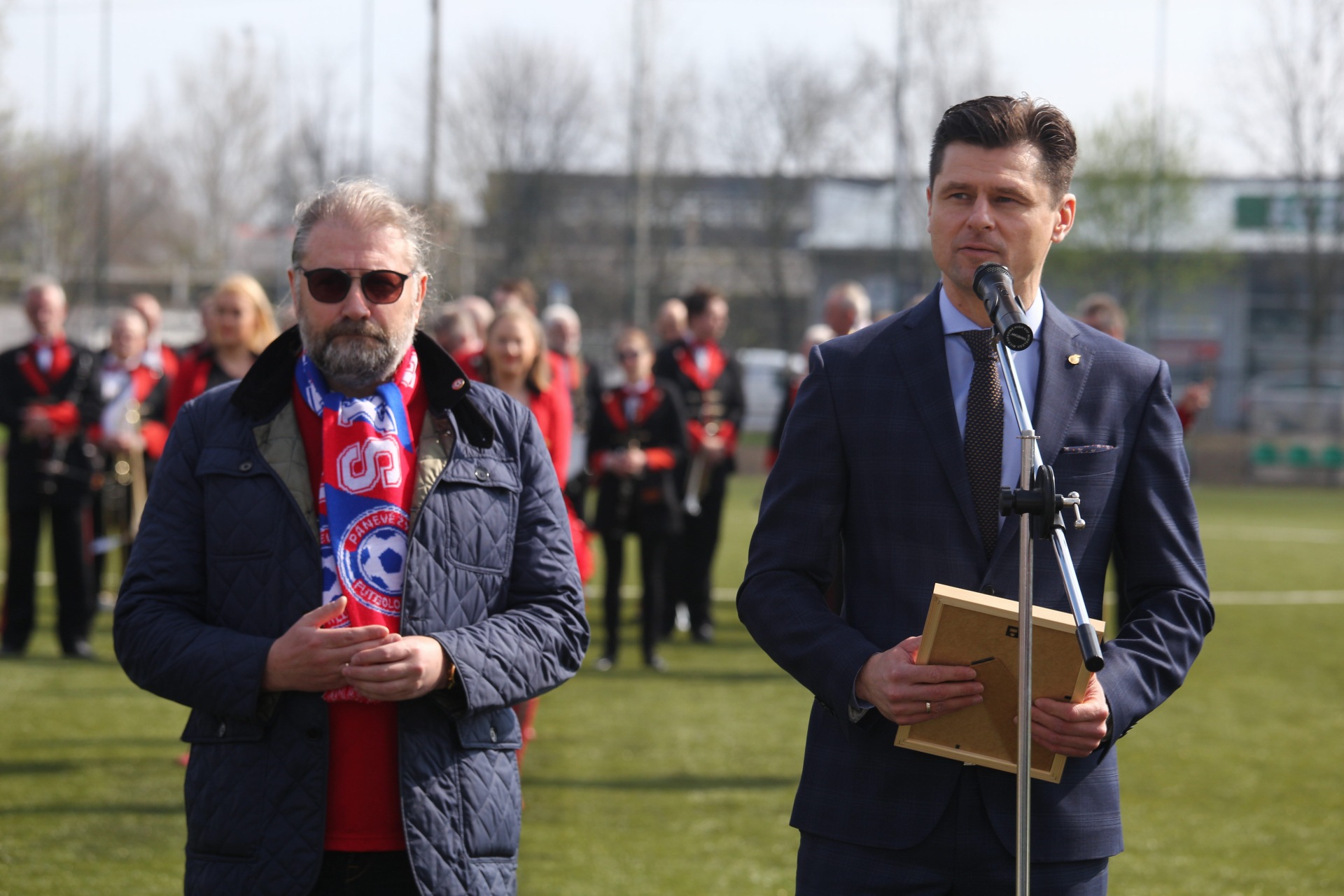 Panevėžio miesto meras R. Račkauskas pasidžiaugė, kad mieste bus aukšto lygio stadionas. Padėkojo LFF prezidentui T. Danilevičiui už pagalbą Panevėžio futbolui, už kokybišką darbą kuriant stadioną – rangovams, „Žemynos“ progimnazijai, kurios teritorijoje įsikūrė naujasis stadionas. Meras padėkojo ir sirgaliams už ištikimybę bei palinkėjo puikių pergalių. T. Danilevičius pasidžiaugė, kad LFF daug metų sklandžiai bendradarbiauja su Panevėžio apskrities futbolo federacija ir miesto valdžia.