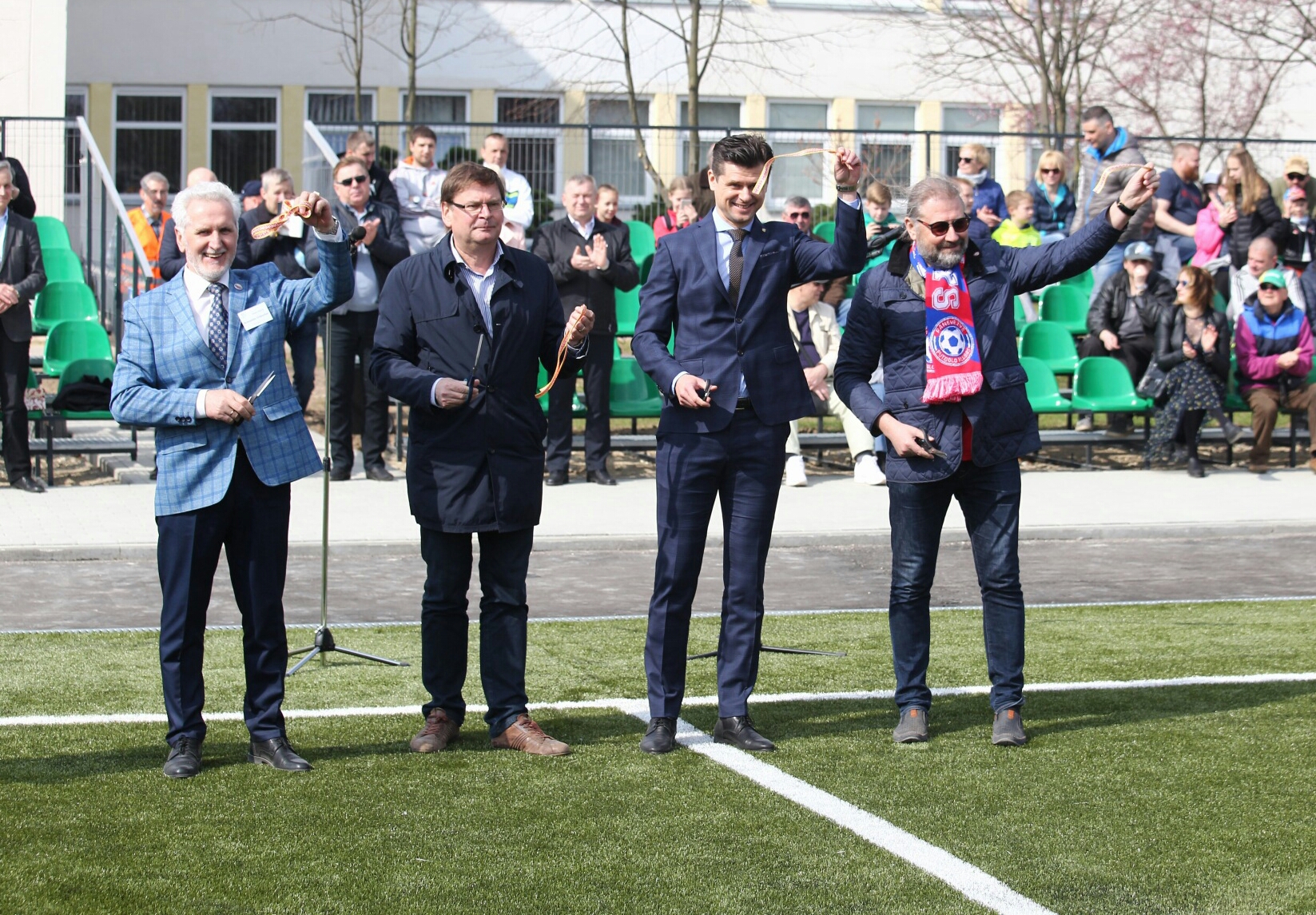Po iškilmingų kalbų, aidint garsiems susirinkusiųjų plojimams, buvo perkirpta stadiono atidarymo juostelė.