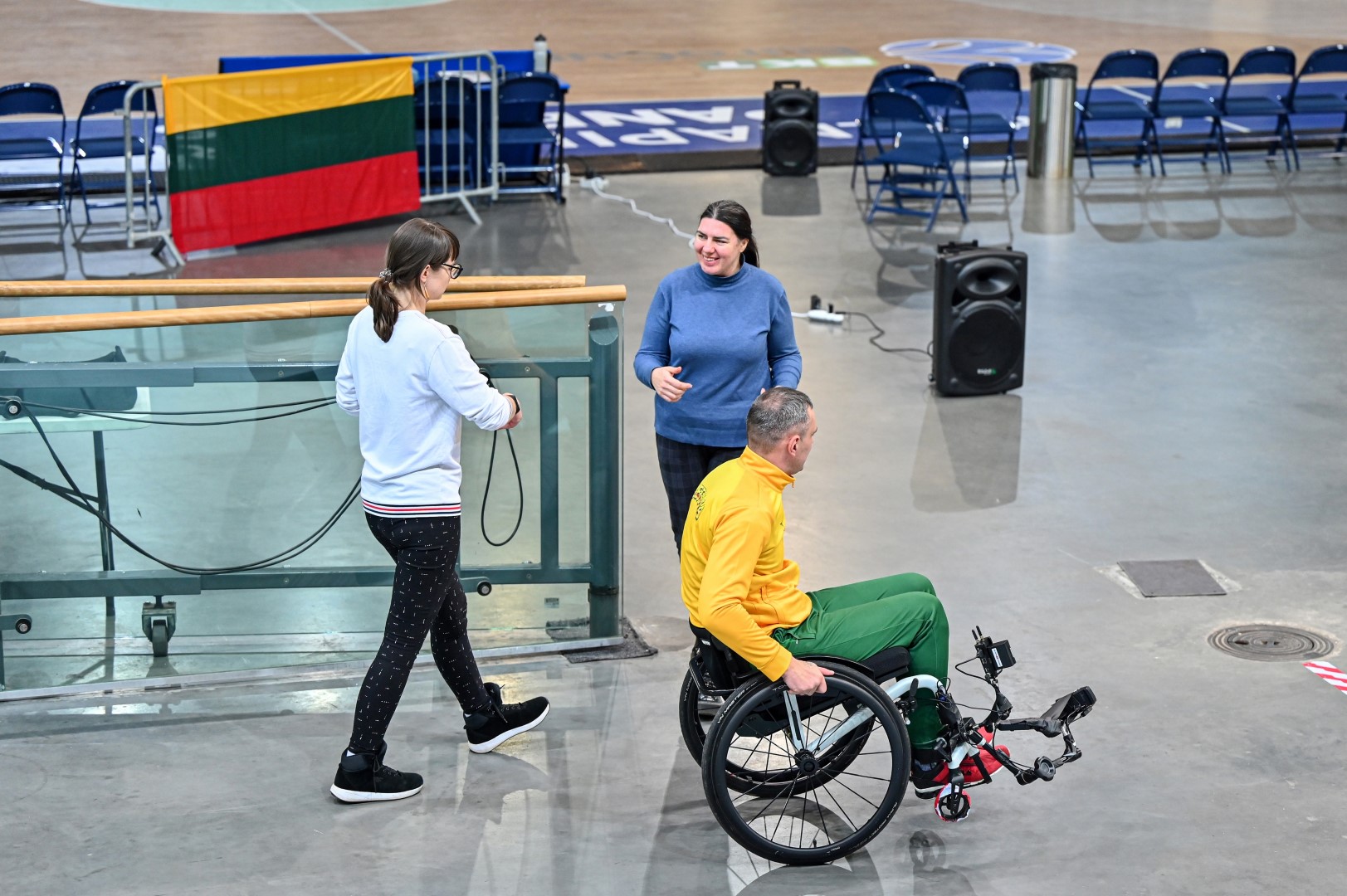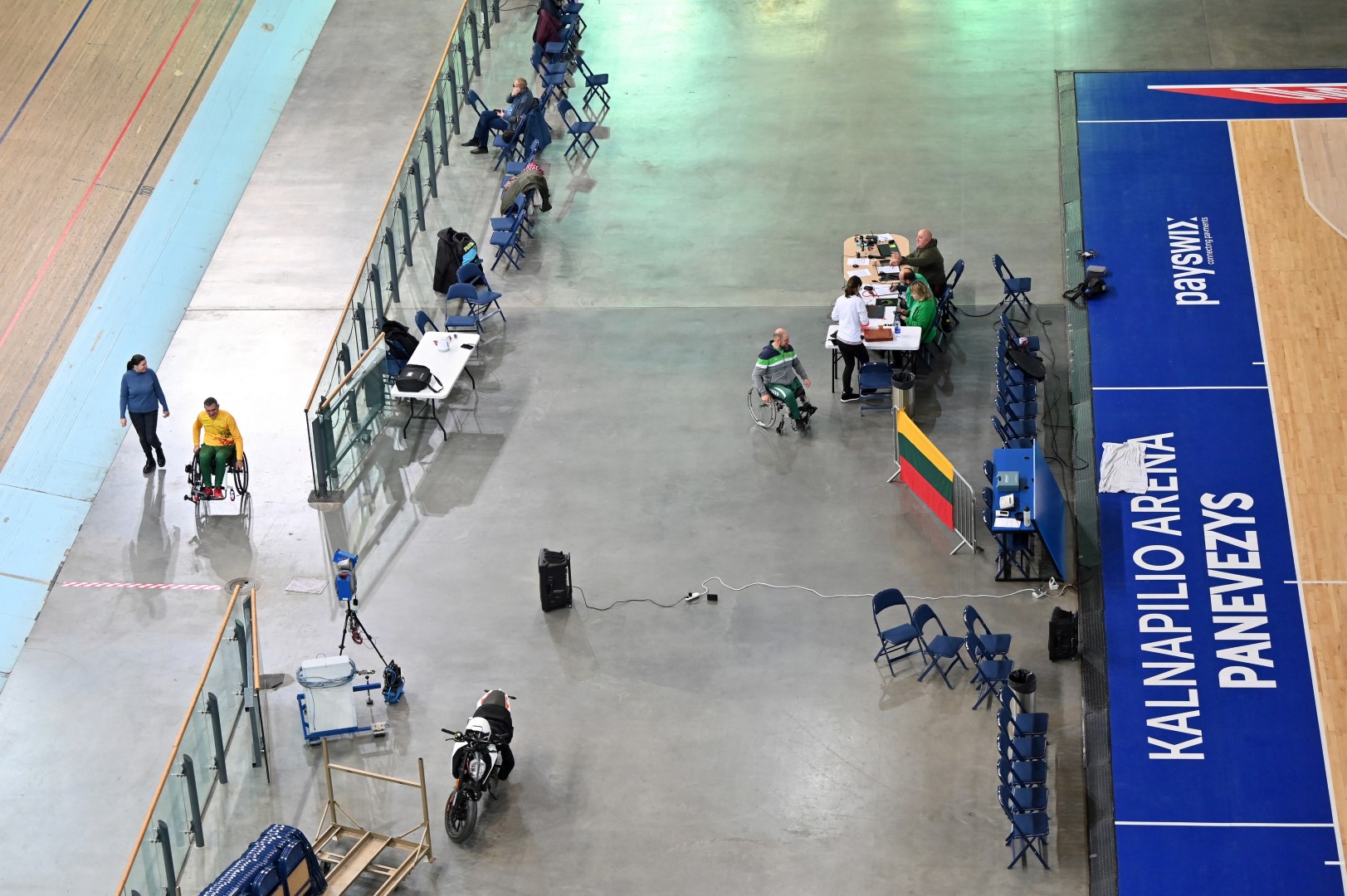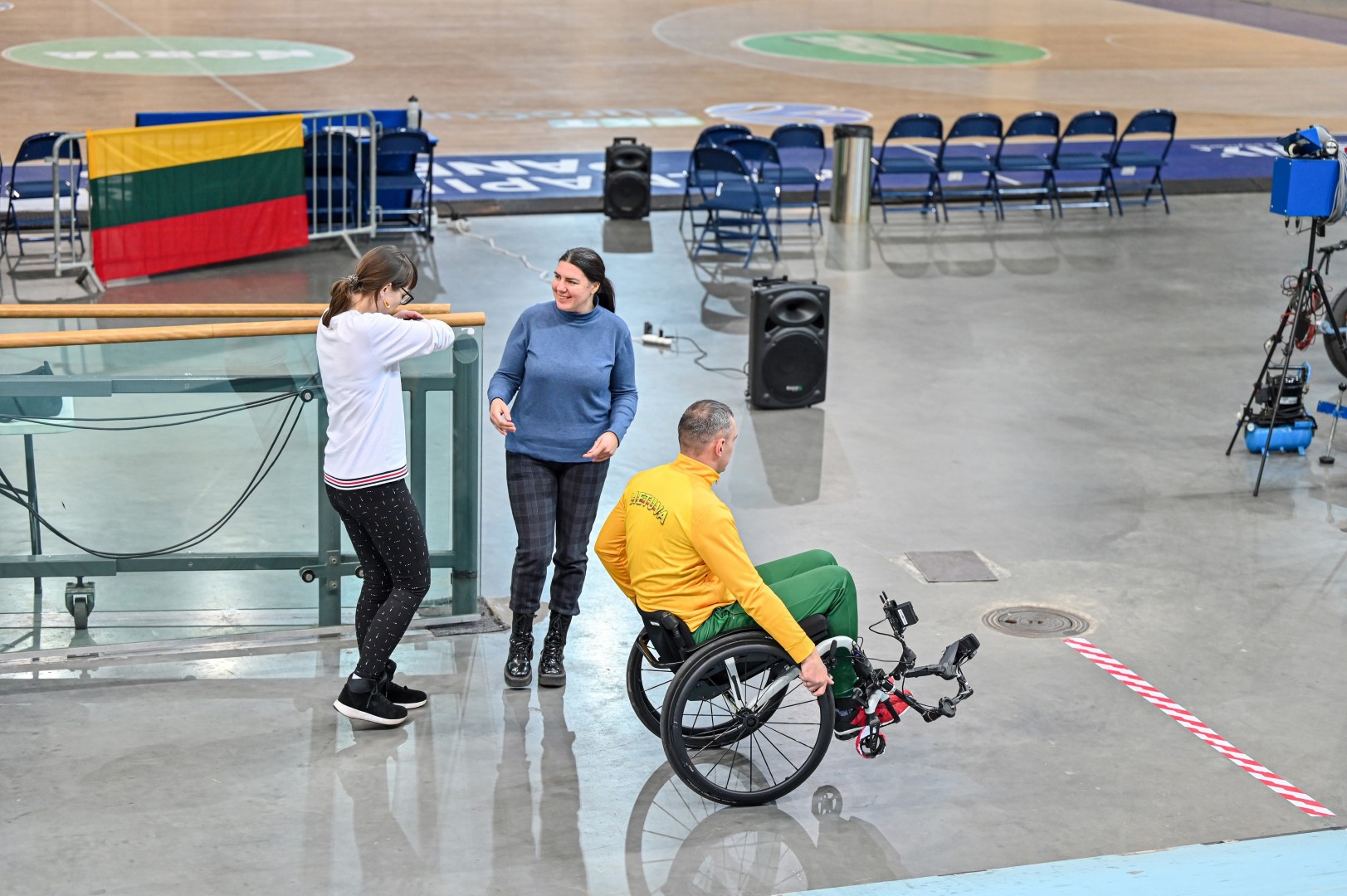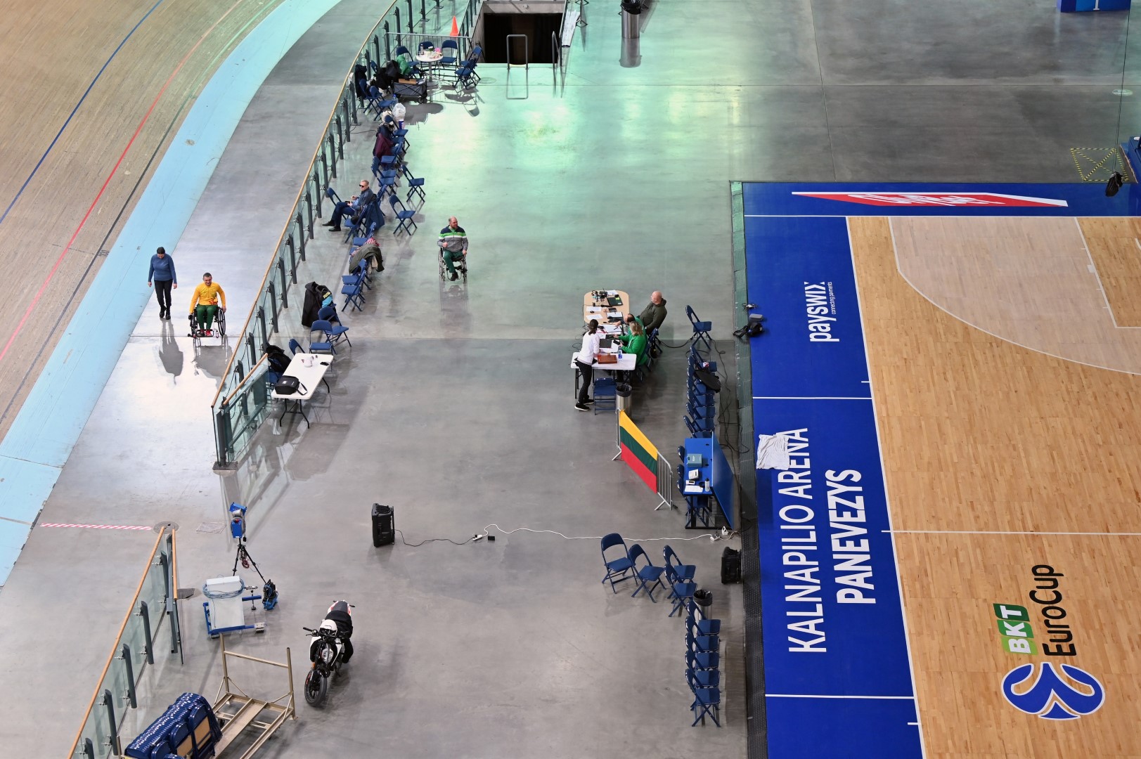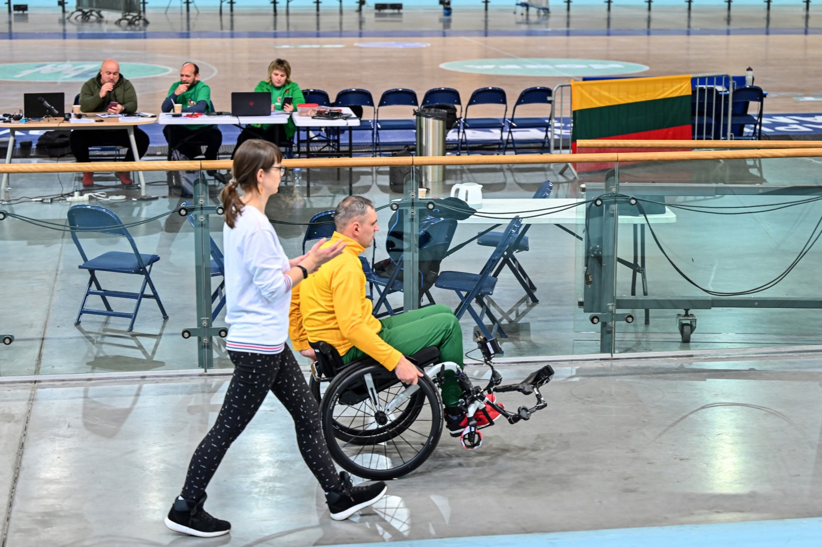 „Kalnapilio“ arenoje trečiadienį zarasiškis Marius Montikas balansuodamas ant dviejų neįgaliojo vežimėlio ratų per beveik 6 val. nuvažiavo 24 km 31 m atstumą.