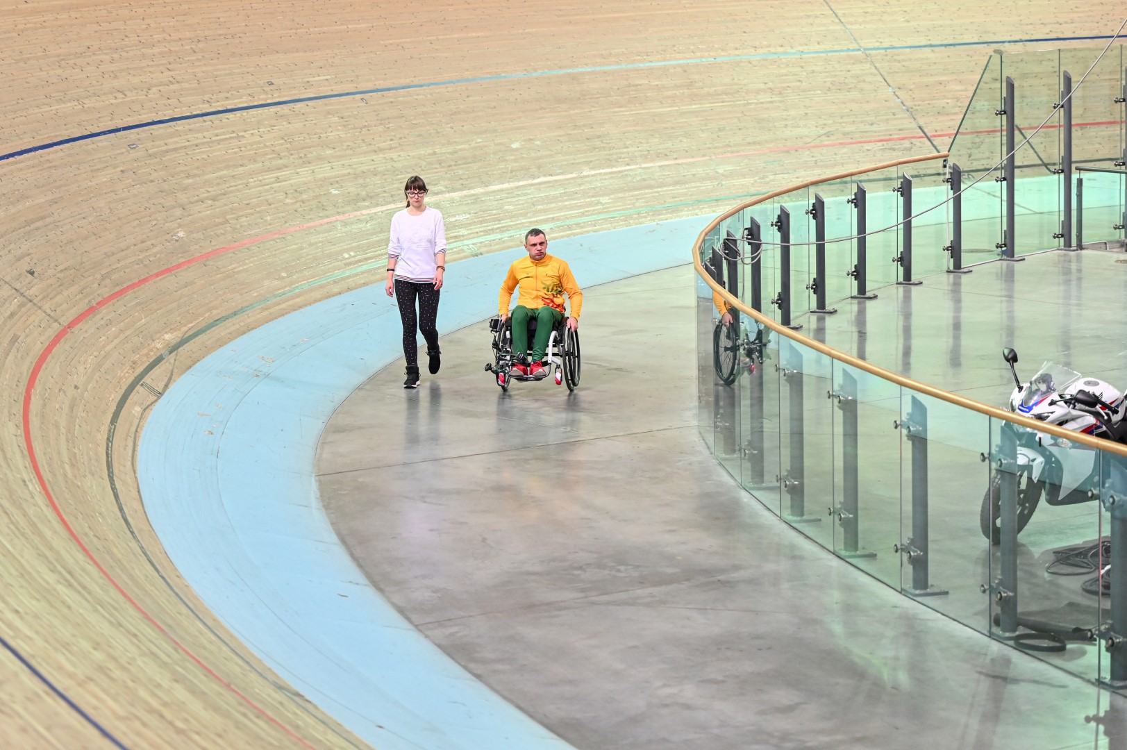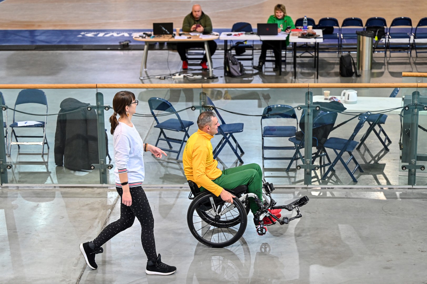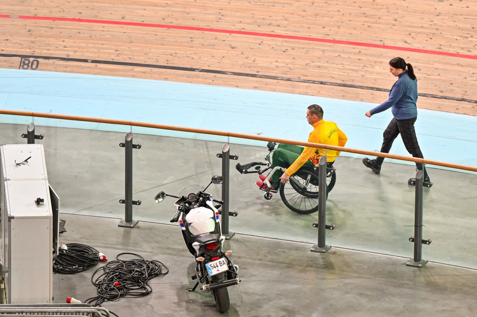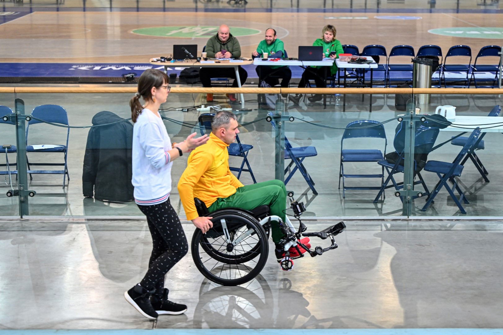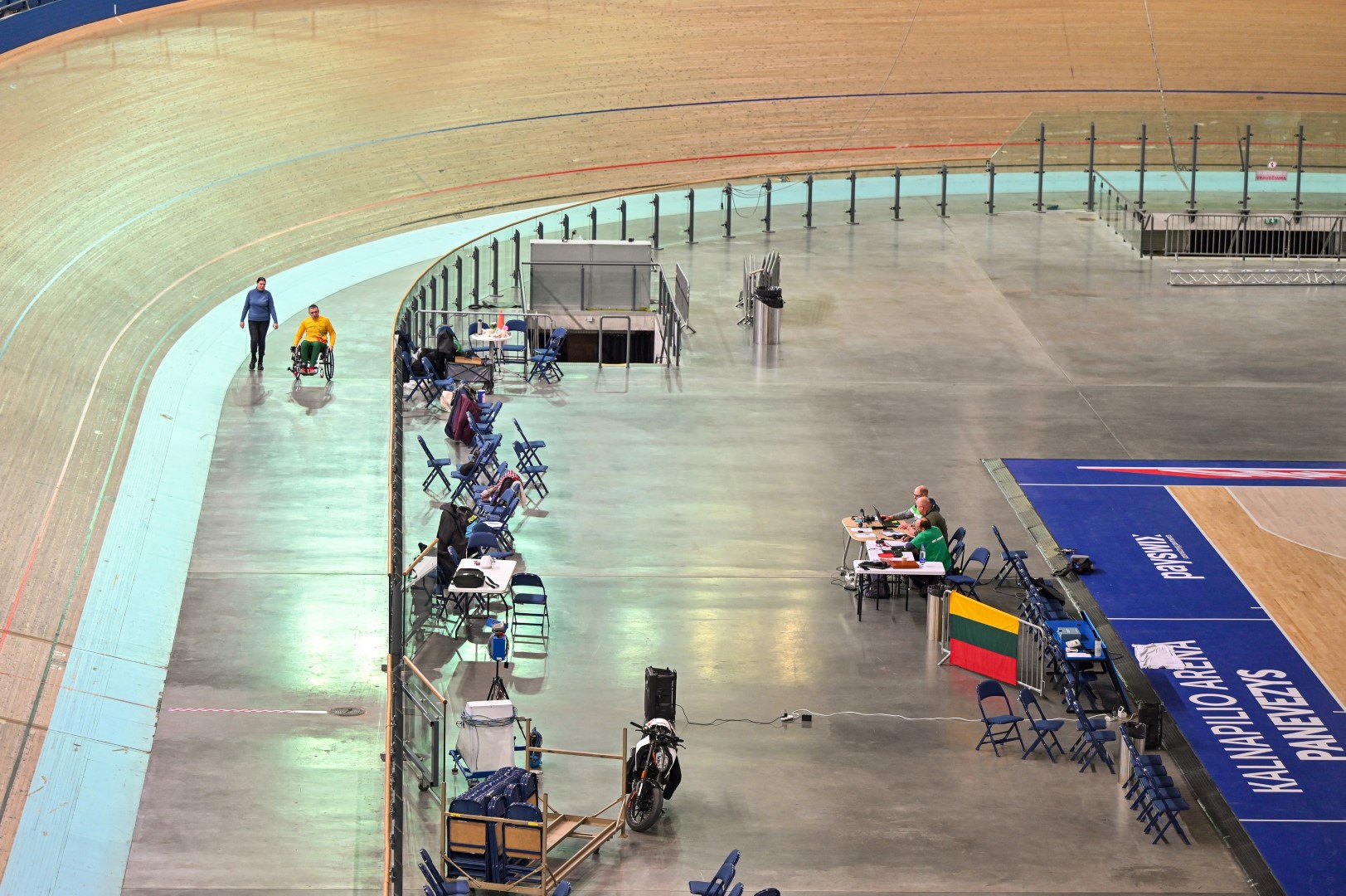 „Kalnapilio“ arenoje trečiadienį zarasiškis Marius Montikas balansuodamas ant dviejų neįgaliojo vežimėlio ratų per beveik 6 val. nuvažiavo 24 km 31 m atstumą.