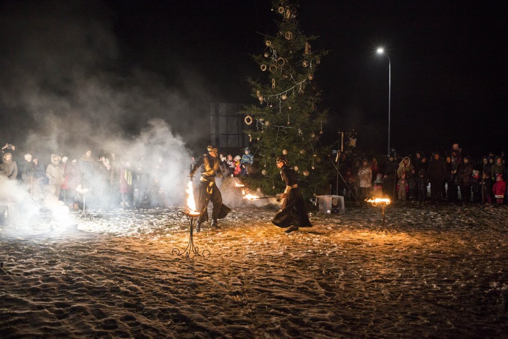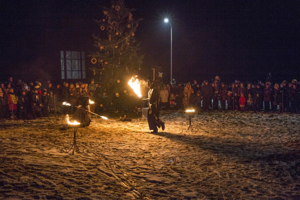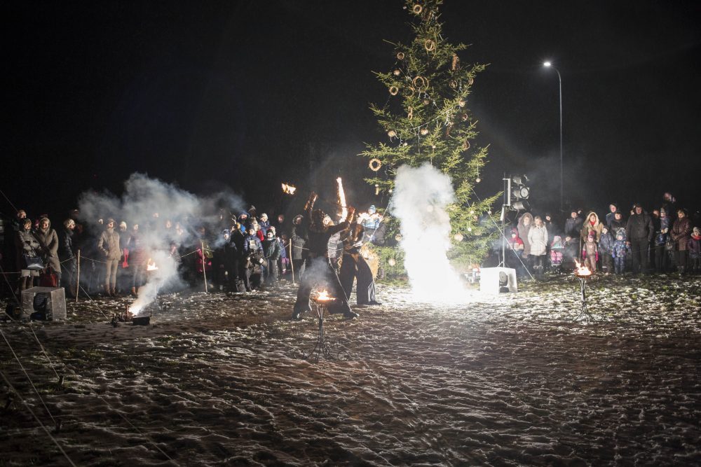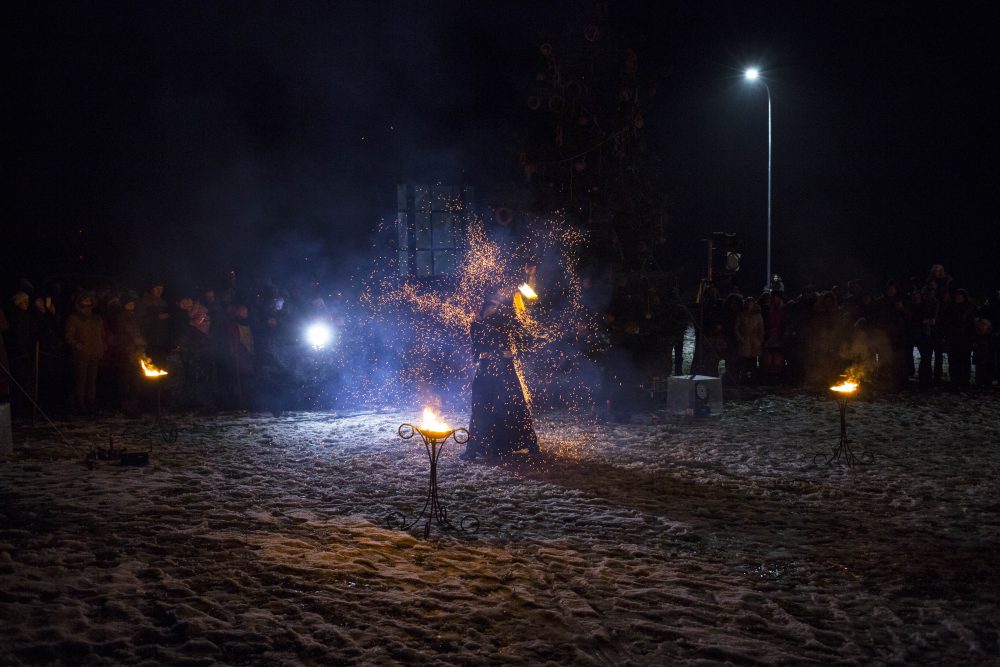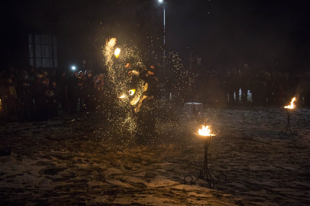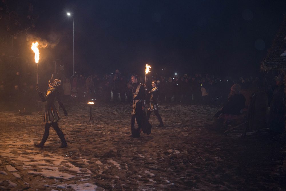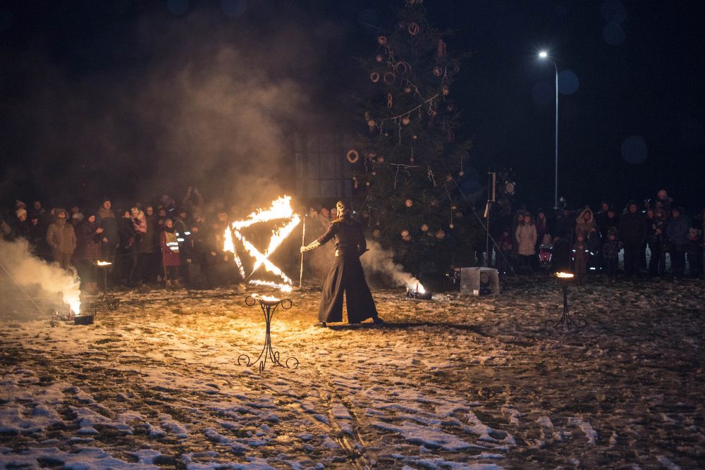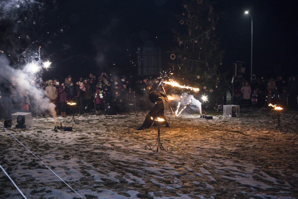 Ketvirtadienio rytą gausiai kritusios snaigės džiugino naujamiestiečius, turėjusius vilties, kad parko atidarymas bus pasakiškai žiemiškas. Deja, iki vakaro sniegą sparčiai nutirpdė lietus. Nepaisant ne itin palankaus oro, gausiai susirinkę į „Ugnies žvaigždės misteriją“ Naujamiestyje žmonės išvydo viduramžių pasiuntinių sukurtą įspūdingą ugnies ir šviesų žaismą, paįvairintą roko baladžių karaliaus Povilo Meškėlos pasirodymo. Į Naujamiestį atskubėjęs Senelis Kalėda įžiebė eglę, pasakojo apie saulės ir mėnulio lenktynes šiuo tamsiuoju metų laiku.