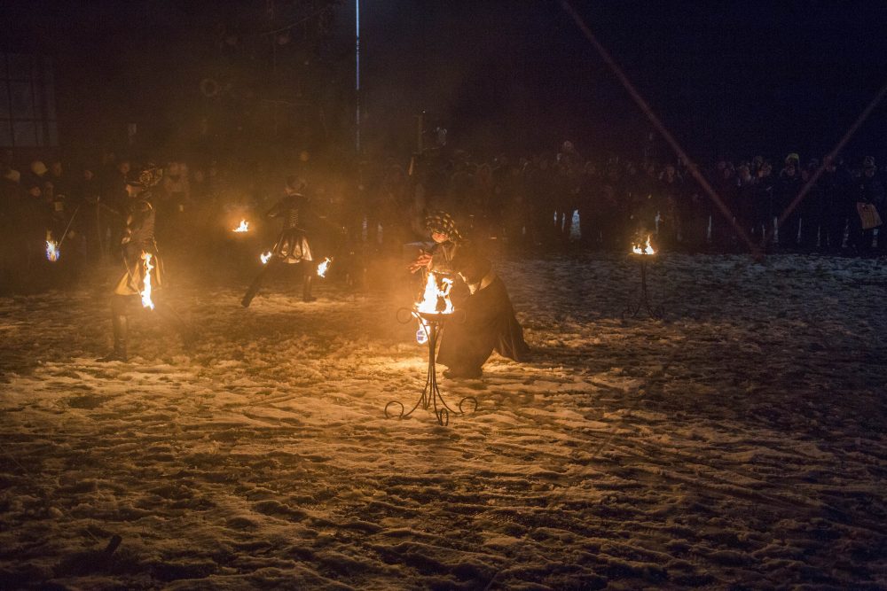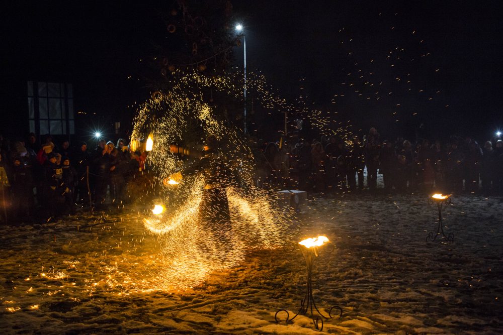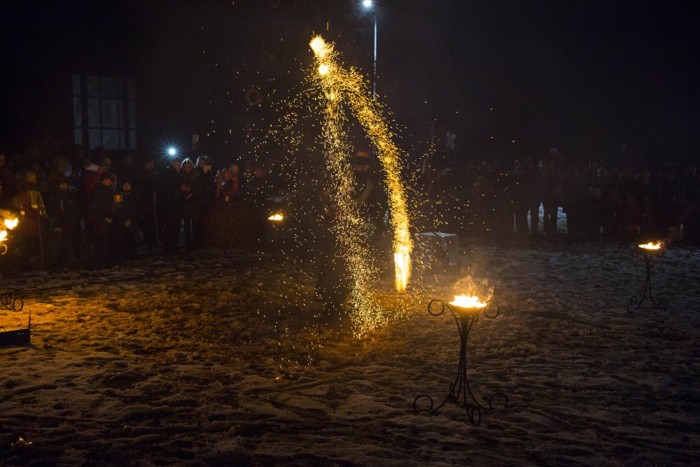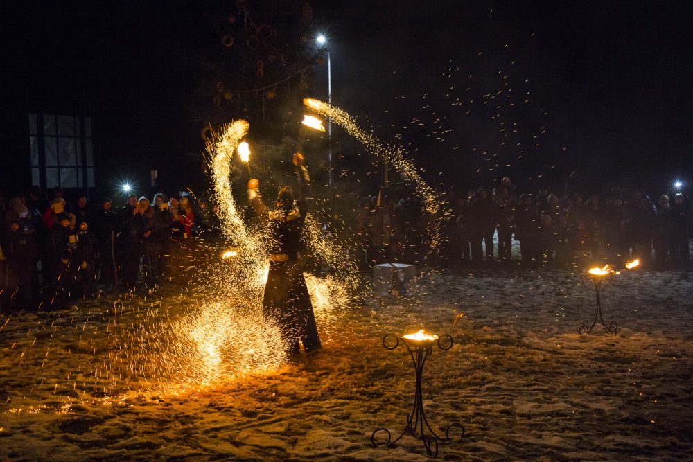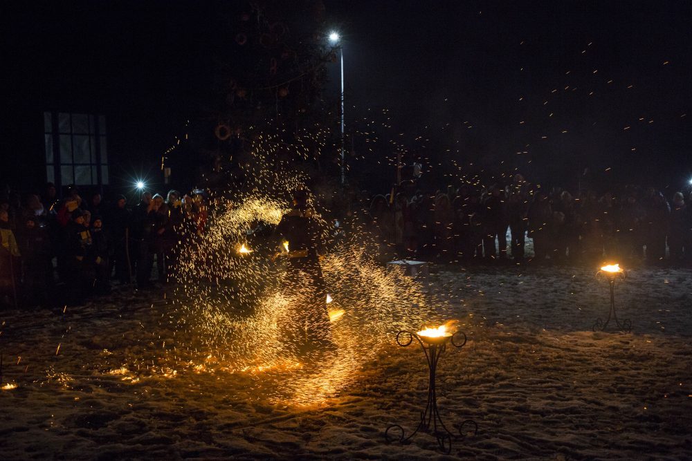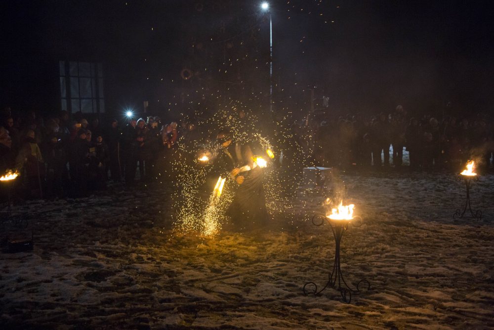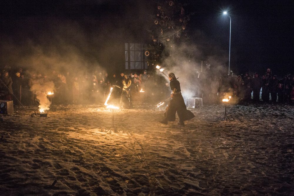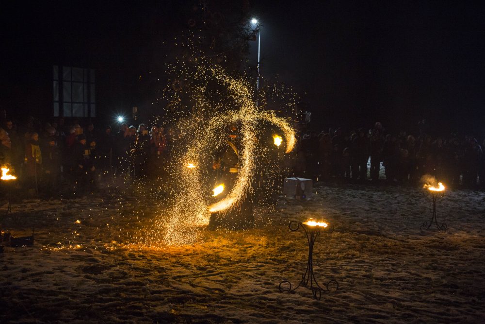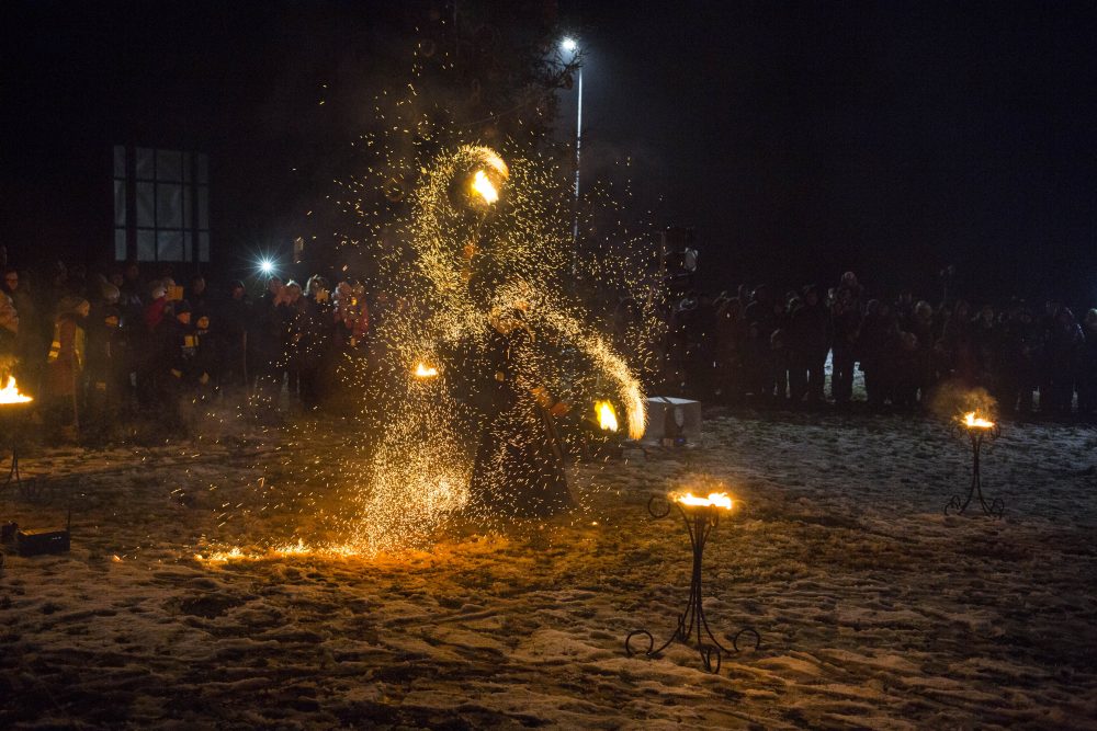 Ketvirtadienio rytą gausiai kritusios snaigės džiugino naujamiestiečius, turėjusius vilties, kad parko atidarymas bus pasakiškai žiemiškas. Deja, iki vakaro sniegą sparčiai nutirpdė lietus. Nepaisant ne itin palankaus oro, gausiai susirinkę į „Ugnies žvaigždės misteriją“ Naujamiestyje žmonės išvydo viduramžių pasiuntinių sukurtą įspūdingą ugnies ir šviesų žaismą, paįvairintą roko baladžių karaliaus Povilo Meškėlos pasirodymo. Į Naujamiestį atskubėjęs Senelis Kalėda įžiebė eglę, pasakojo apie saulės ir mėnulio lenktynes šiuo tamsiuoju metų laiku.