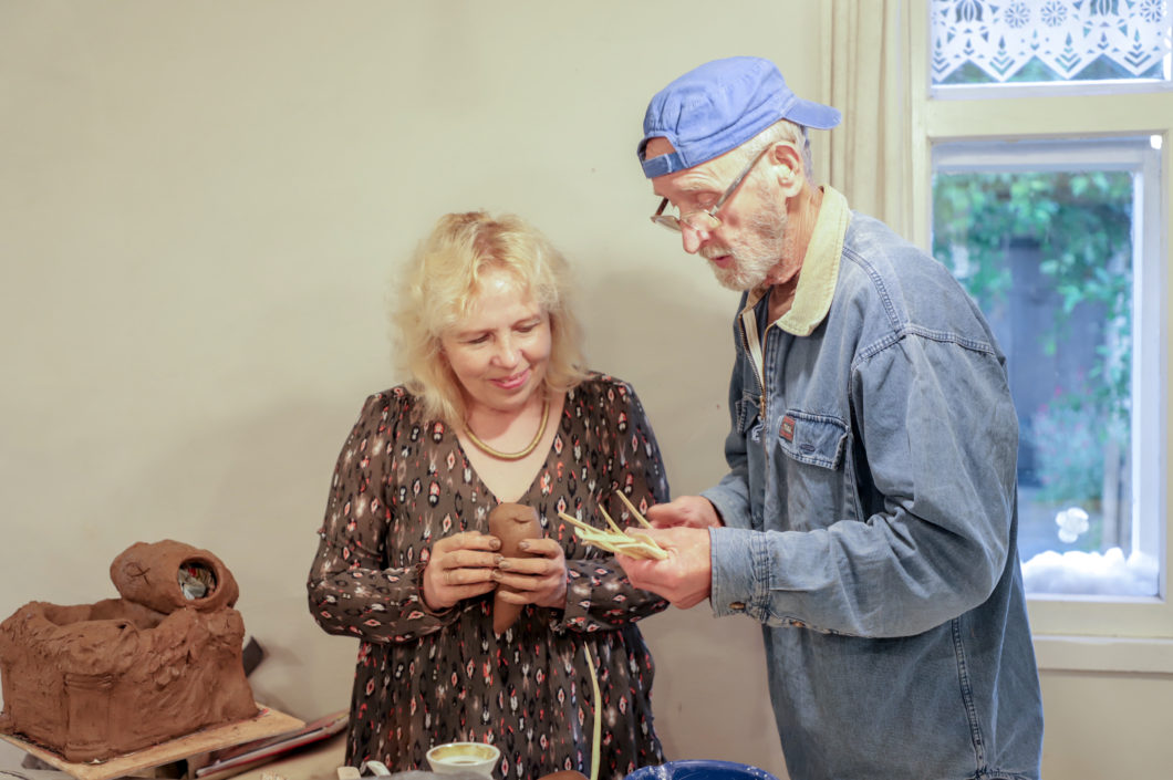 Ramygalos miestelio gilumoje stovi namelis baltais langeliais, rudom langinėm, pravirais varteliais į kiemą. Darželyje žydi gėlės. Po langu – rūtos… Visai tokios pat, kaip mūsų močiučių ir promočių augintos. Darželį juosia tvora, molinėmis puodynėmis padabinta. Nejučiom akys ieško laisvai vaikštinėjančių vištų, bet atranda krosnį. Ir ne bet kokią, o specialią – keramikos dirbiniams degti.