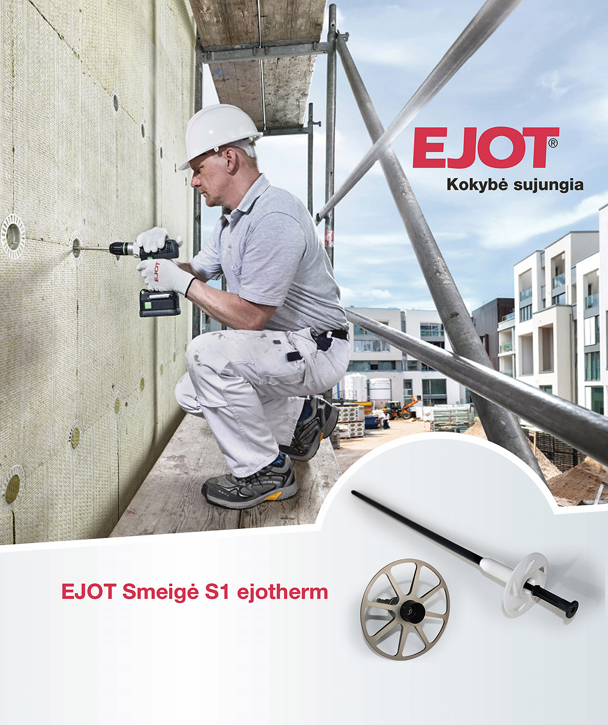 Naująjį EJOT sprendimą pasirinks ir siekiantieji spartesnio montavimo, tą padeda padaryti įstatyta vinis. Trumpiausias įgilinimo gylis, atlaikoma didžiausia apkrova, užtikrinamas didžiausias saugumas panaudojant mažiausią smeigių skaičių – visus šiuos pranašumus suteiks naujosios smeigės „S1 Ejotherm“.