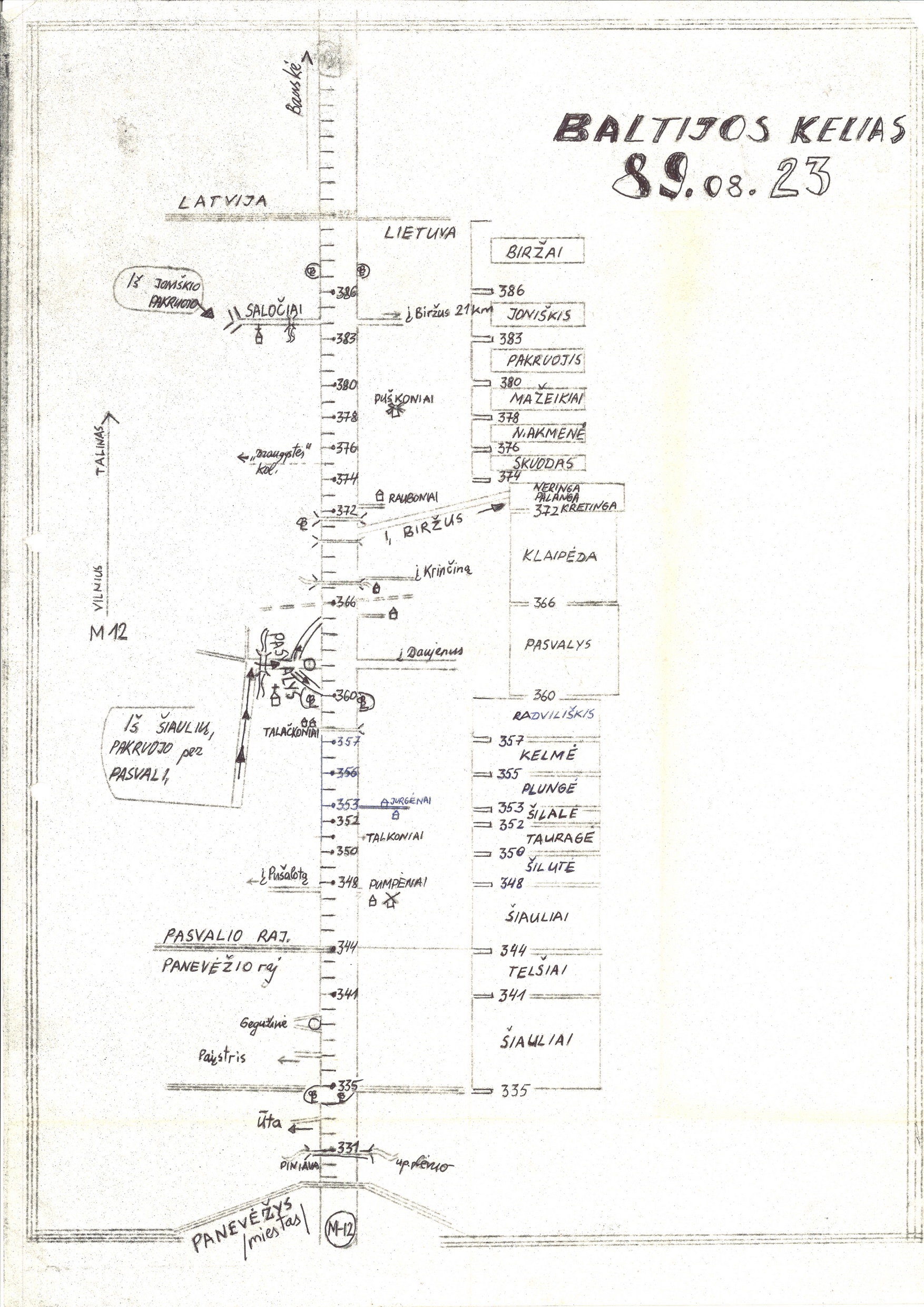 Ši pasvaliečio A. Mulevičiaus anuomet ranka nubraižyta schema, žyminti kiekvieno miesto ir rajono stovėjimo vietą per Panevėžio apskritį einančioje „Via Baltica“ atkarpoje, dabar tapusi istoriniu dokumentu.