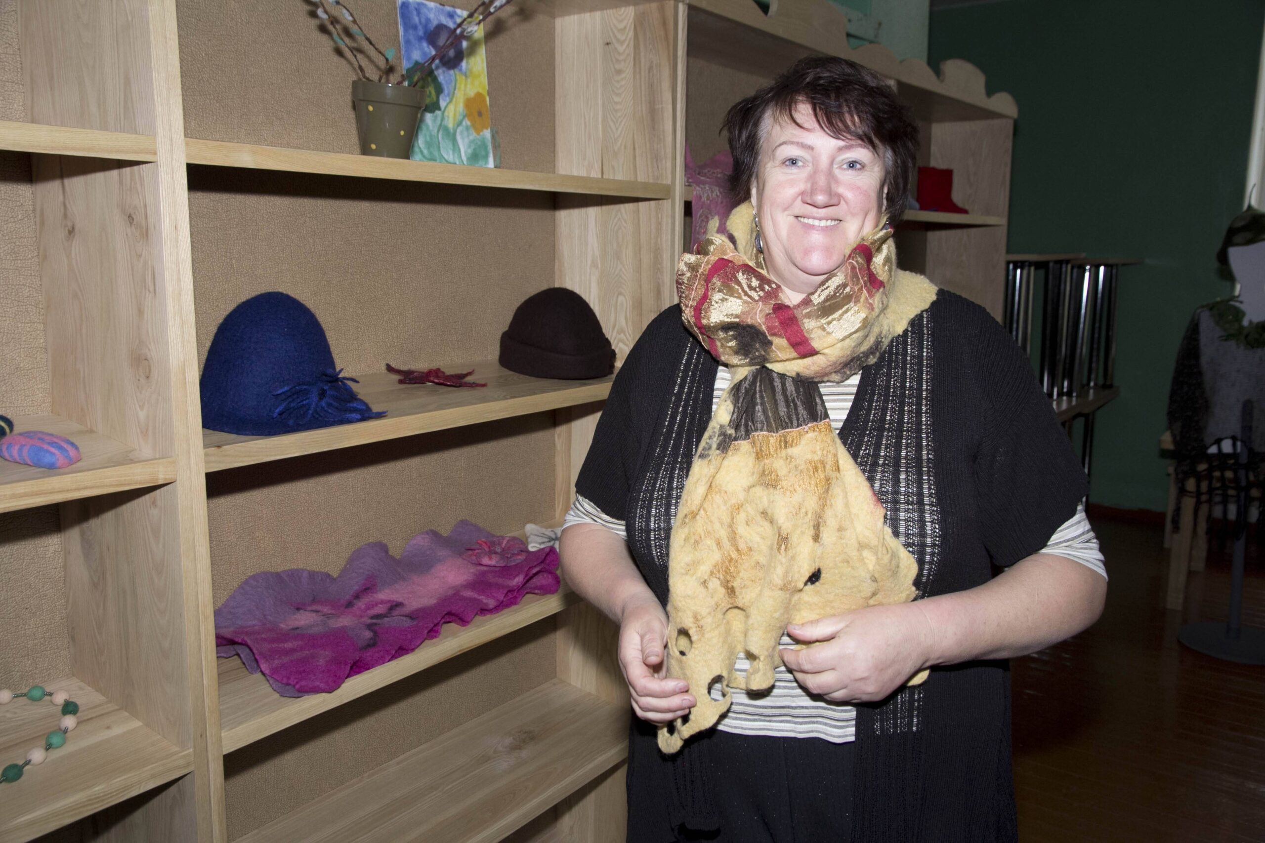 Dabar šiūlėniškės į amatų centrą renkasi kiekvieną trečiadienį ir ne tik veltinius, bet ir įvairius kitus gaminius velia. Lentynose puikuojasi jų sukurti įvairiausi papuošalai, šaliai, skrybėlaitės.