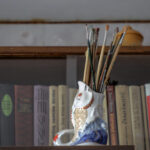 Ir svečius kūrėja namuose pasitinka segėdama savo kūrybos papuošalu su turkio akmenimis.
