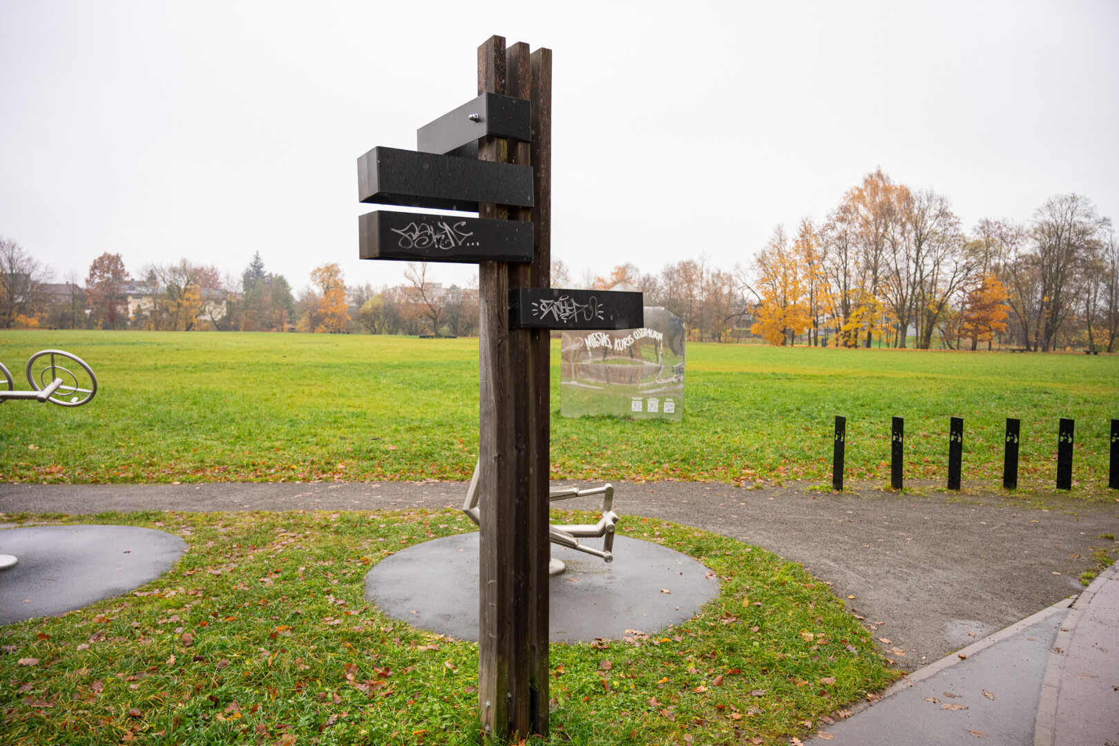 Tušti tebestovintys stendai turėjo pasakoti parko istoriją ir miesto legendas.