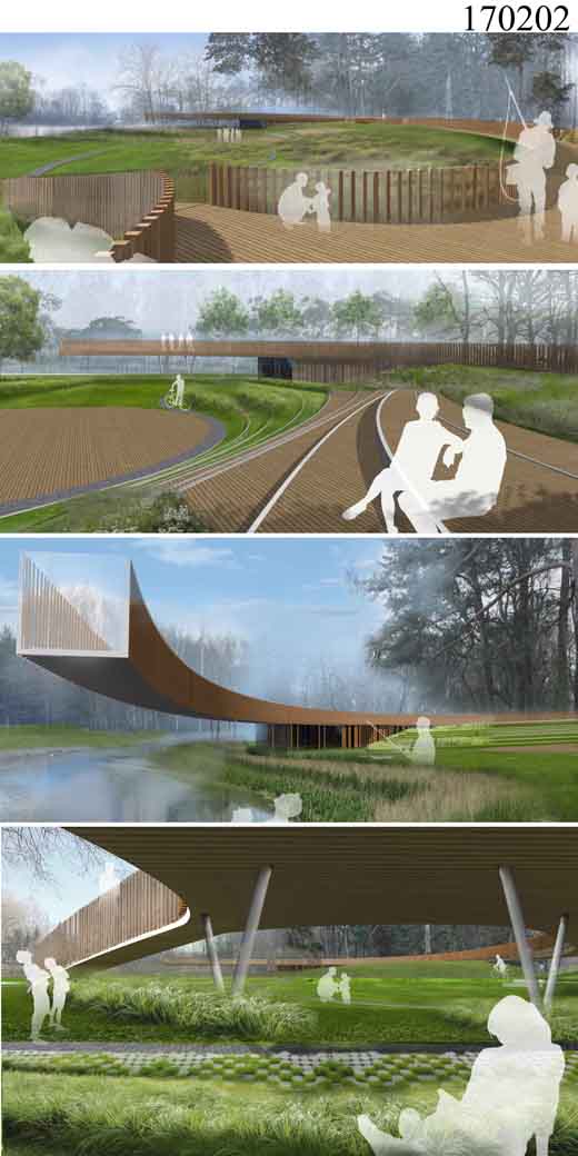 Beveik visuose konkursui pateiktuose projektuose siūloma atgaivinti Skaistakalnio parke esančią Juozo Čerkeso-Besparnio sodybą ir įrengti apžvalgos aikštelę.