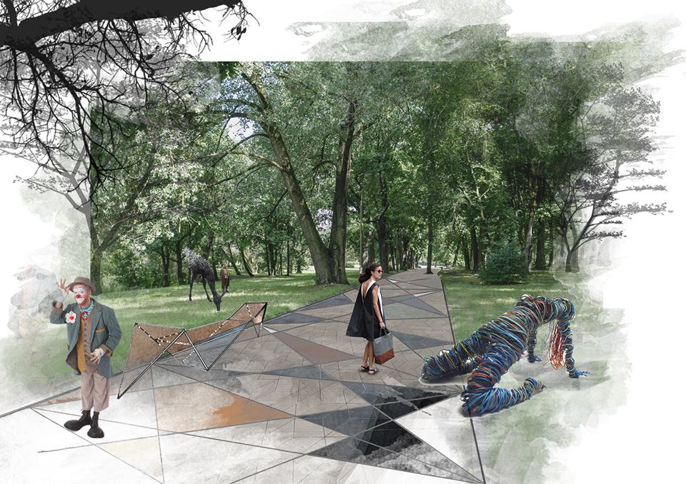 Per daug neskoningų, sunkių betono konstrukcijų. Kur originalūs rastų statiniai su medinių skulptūrų fragmentais, raižiniais. Parke kuo mažiau miesčioniškumo, daugiau autentikos ir be šunų.