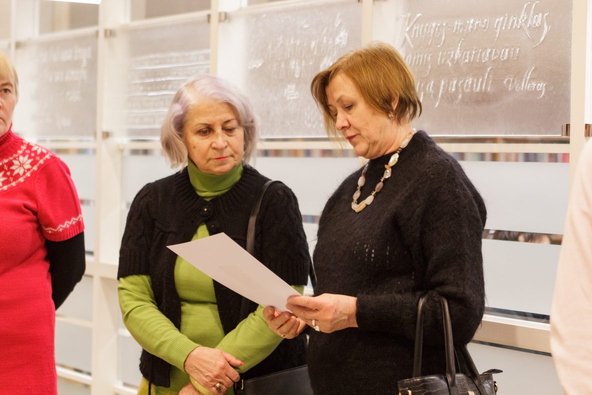 Devyniolika bibliotekoje eksponuojamų skirtingo formato tapybos darbų, kuriuos sutiko paskolinti Nacionalinis M. K. Čiurlionio dailės muziejus, neseniai pargabenti iš tolimųjų Jungtinių Amerikos Valstijų.