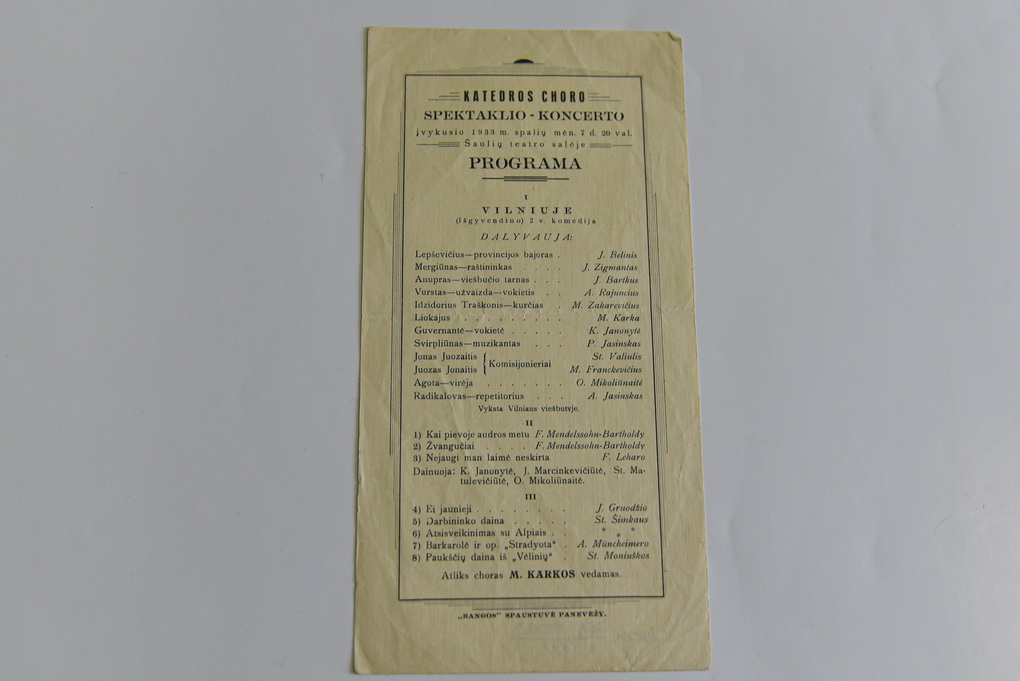 „Svarbų pėdsaką Panevėžio kultūriniame muzikiniame gyvenime paliko Mykolo Karkos vadovavimas „Dainos“ draugijos Panevėžio skyriui“, – sako fondų saugotoja.