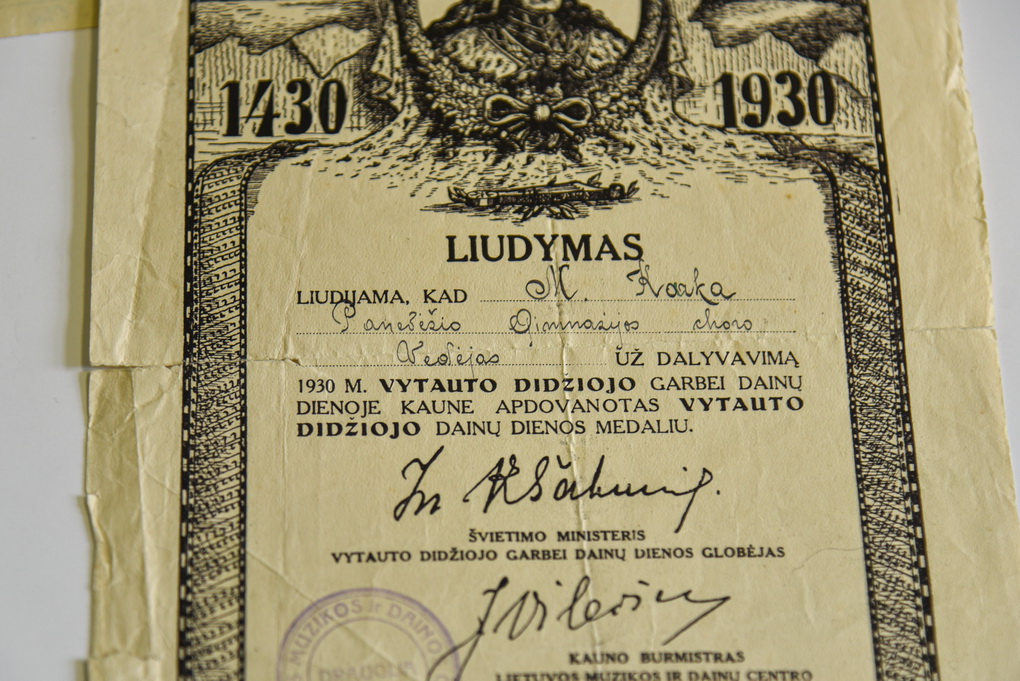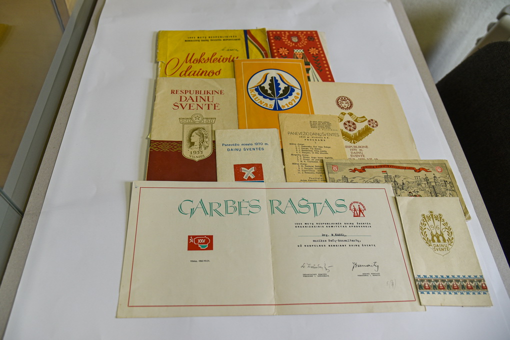„Šie dokumentai yra įvairaus lygio – pradedant respublikinėmis, Panevėžio miesto ir rajono, kitų miestų dainų šventėmis, – vardija muziejininkė. – Tai – švenčių programos, kvietimai, padėkos už dalyvavimą. Taip pat Kultūros ministerijos raštai dėl atrankos į Dainų šventę sąlygų, terminų, įvairi korespondencija, susijusi su dalyviais.“