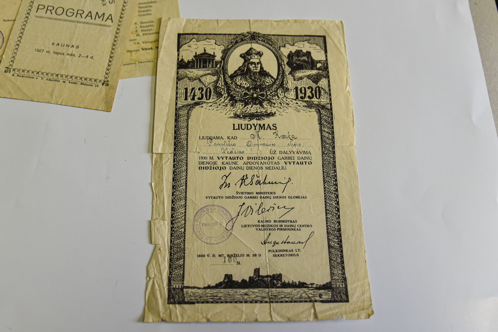 Fondų sergėtojos teigimu, apskritai daug archyvo dokumentų yra susiję su dainų šventėmis – tiek tarpukario, vykusiomis 1927-aisiais, 1928-aisiais, 1930 metais, tiek vėliau – 1942–1977 metais.
