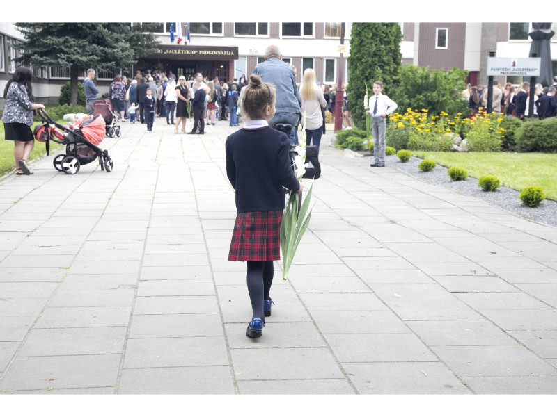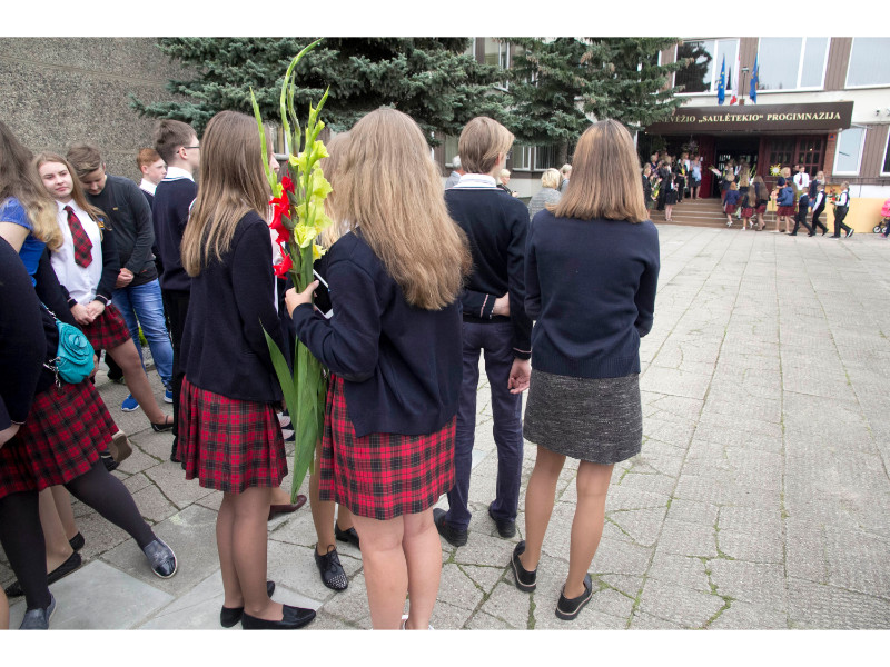 Panevėžietis Saulius Zaura, į pirmąją klasę K. Paltaroko gimnazijoje palydėjęs dukrą Viktoriją, šmaikštauja, jog mokykla turi vieną didelį privalumą prieš darželį.