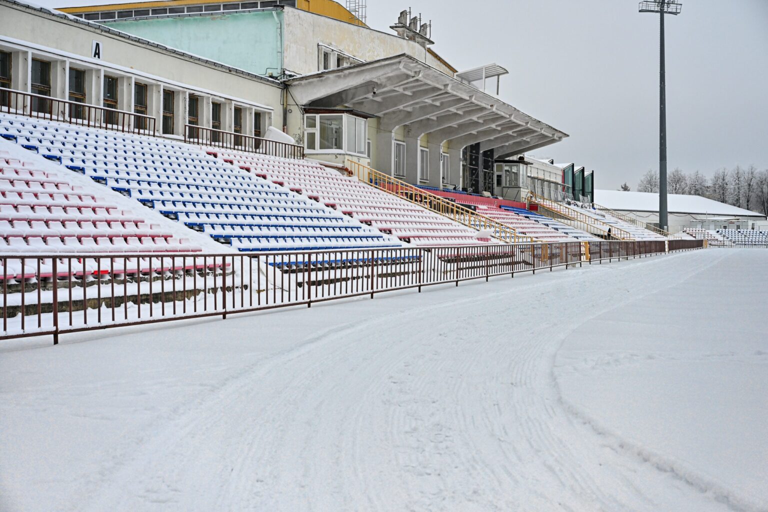 „Aukštaitijos“ stadiono bėgimo take trečiadienį suformuota slidinėjimo trasa. Ketvirtadienį pirmieji ją išbandė sportininkai.