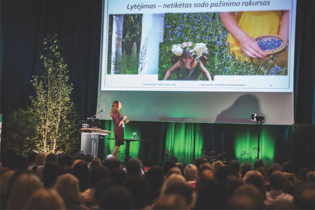 Kraštovaizdžio architektė Dovilė Ivanauskienė pristatė aplinkos projektą netoli Trakų įsikūrusiame kaimo turizmo komplekse „Riterio krantas“, kur šiuo metu veša ne tik gėlynai, bet ir vaistažolės. Kalbėdama apie lytėjimo svarbą, pranešėja minėjo ir „Eko basų kojų“ taką Biržų rajone, kuriame tenka eiti skirtingų miško takų paviršiumi.