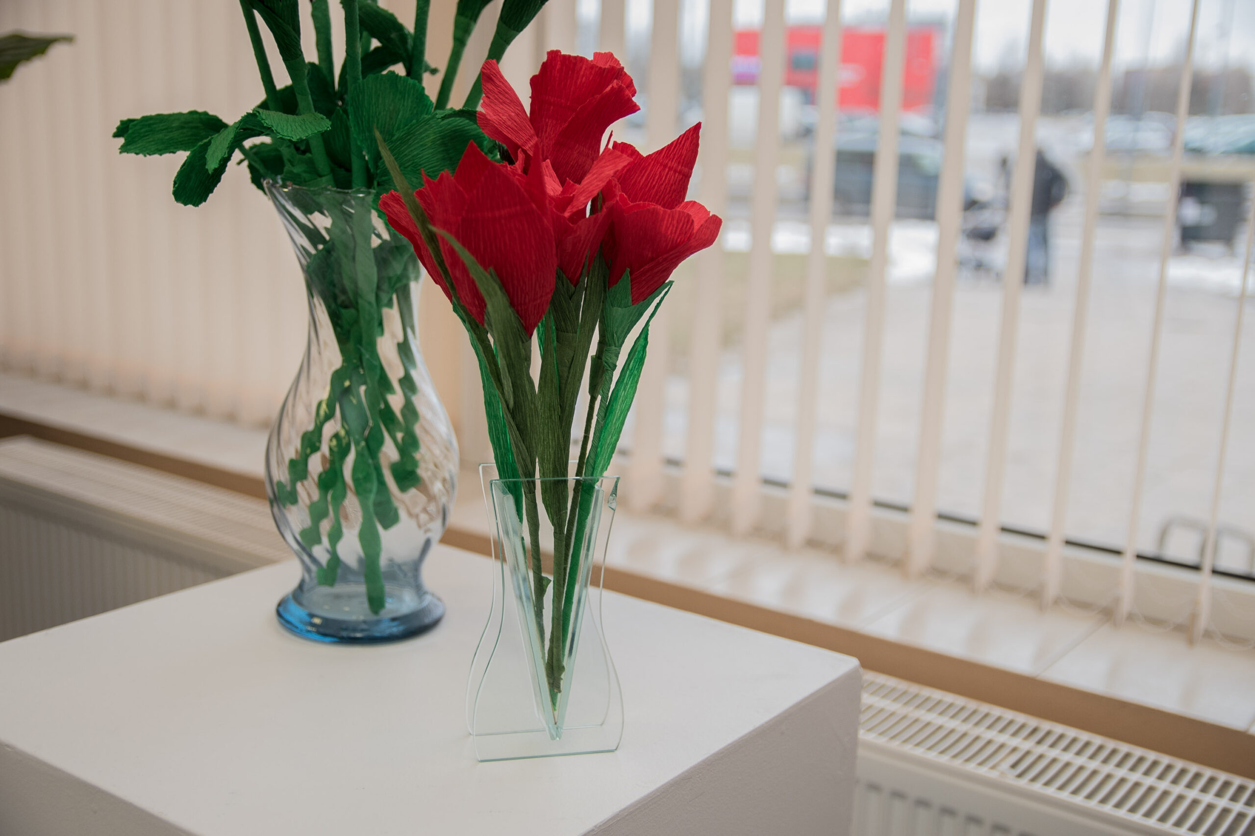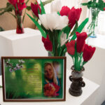 Ir štai parodoje rikiuojasi didelės įvairiaspalvių dirbtinių gėlių puokštės, o jų autorę sveikina visi atėjusieji.