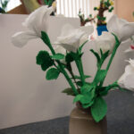 Kovo 8-ąją „Židinio“ bibliotekoje atidaryta pirmoji E. Lukšienės kurtų dirbtinių gėlių paroda.