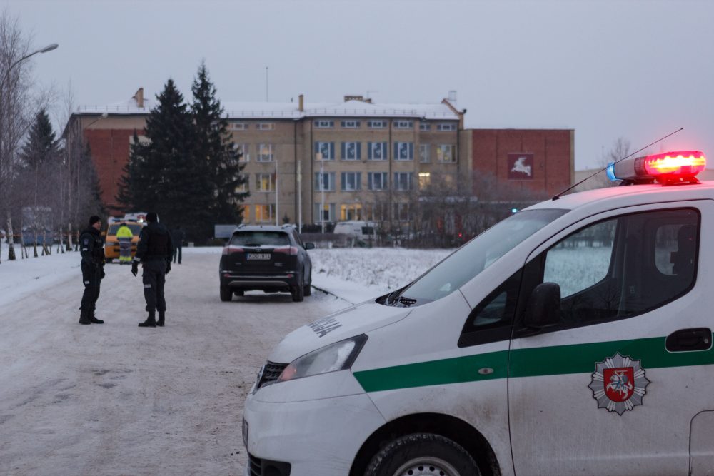 Prieš 8 val. gimnazijos direktorius Rimtas Baltušis sulaukė policijos pranešimo, jog specialiosios tarnybos informuotos apie mokykloje padėtą sprogmenį.