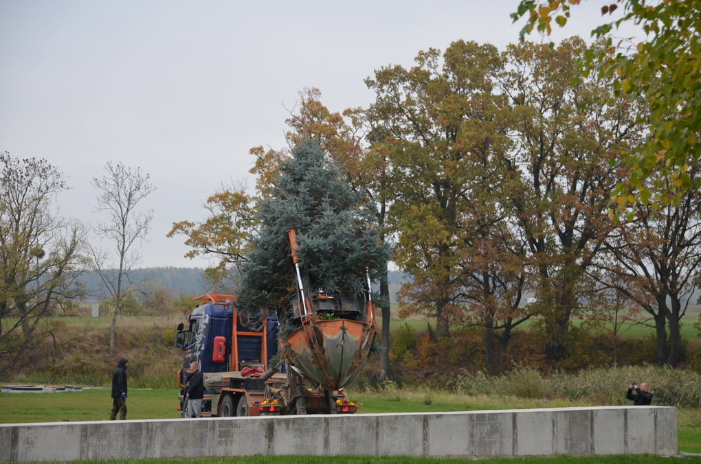 Aukštą medį iš sodybos iškasė ir aikštėje pasodino ta pati technika.