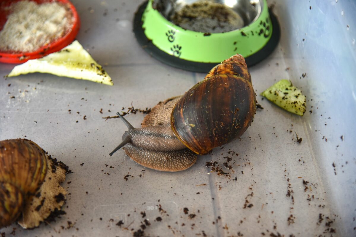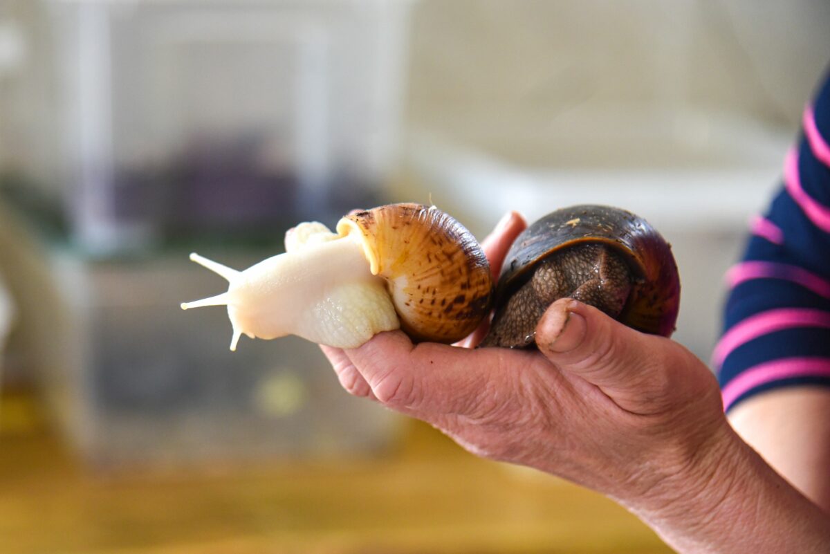 „Tai ne karvė. Jei nepaduosi maisto, užmigs ir palauks. Vandeniu palaistai ir vėl sraigė juda“, – šypsosi pašnekovė, vieną savo achatiną traukdama iš vandens dubenėlio.