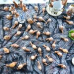 Negavę drėgmės ir maisto, šie moliuskai ilgam užsnūsta. Šeimininkai juos surenka, nuplauna, išvalo ir neša į skerdyklą – mažytę patalpą, kur surenkama sraigių mėsa.