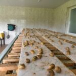 Kelionę pas sraiges J. Krištaponienė pradeda nuo patalpos, kur šiuo metu miega motininė sraigių banda. 3000 gyvūnų aplipę specialų stelažą jau baigė savo misiją ir keliaus į perdirbimą.