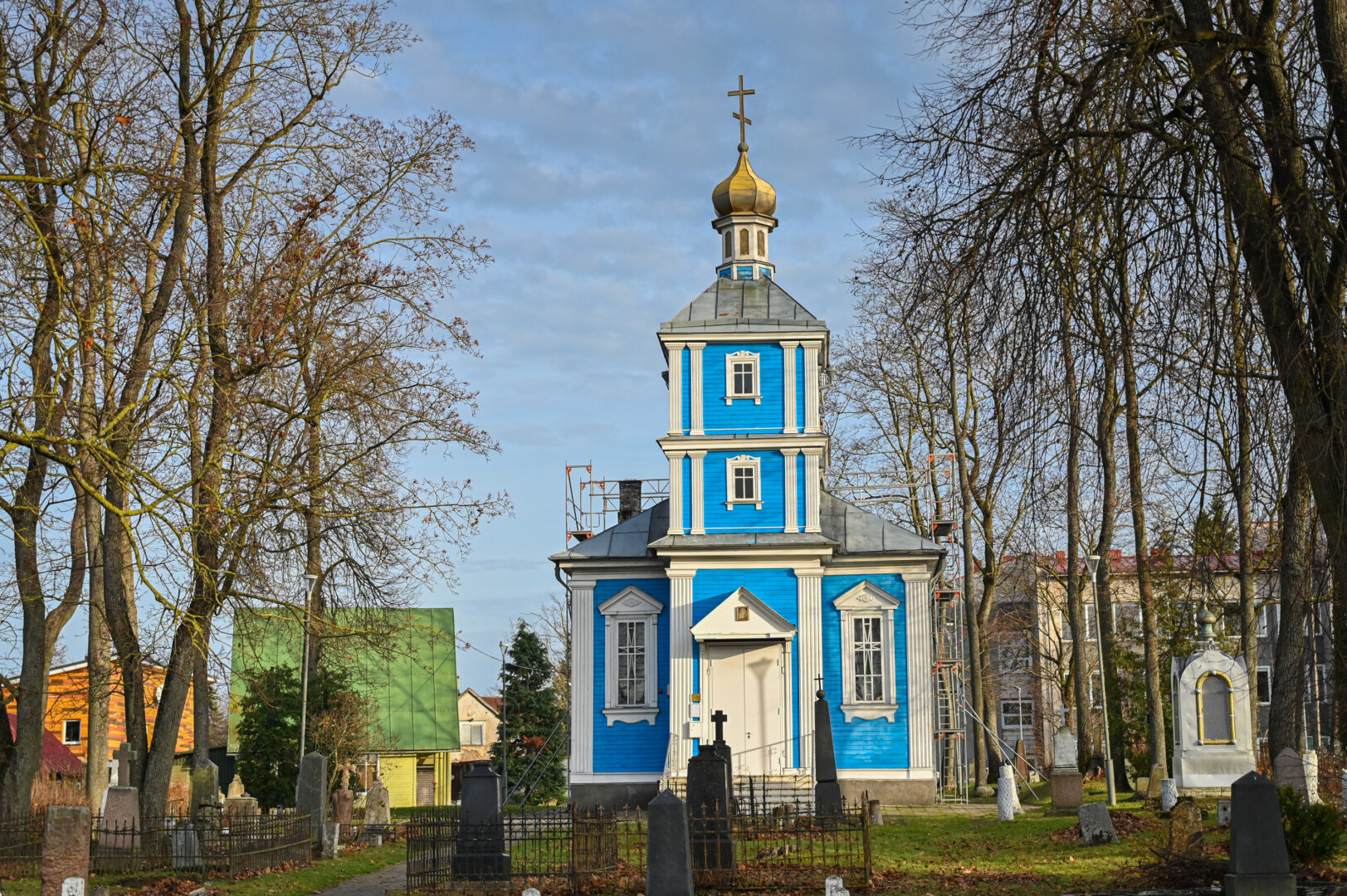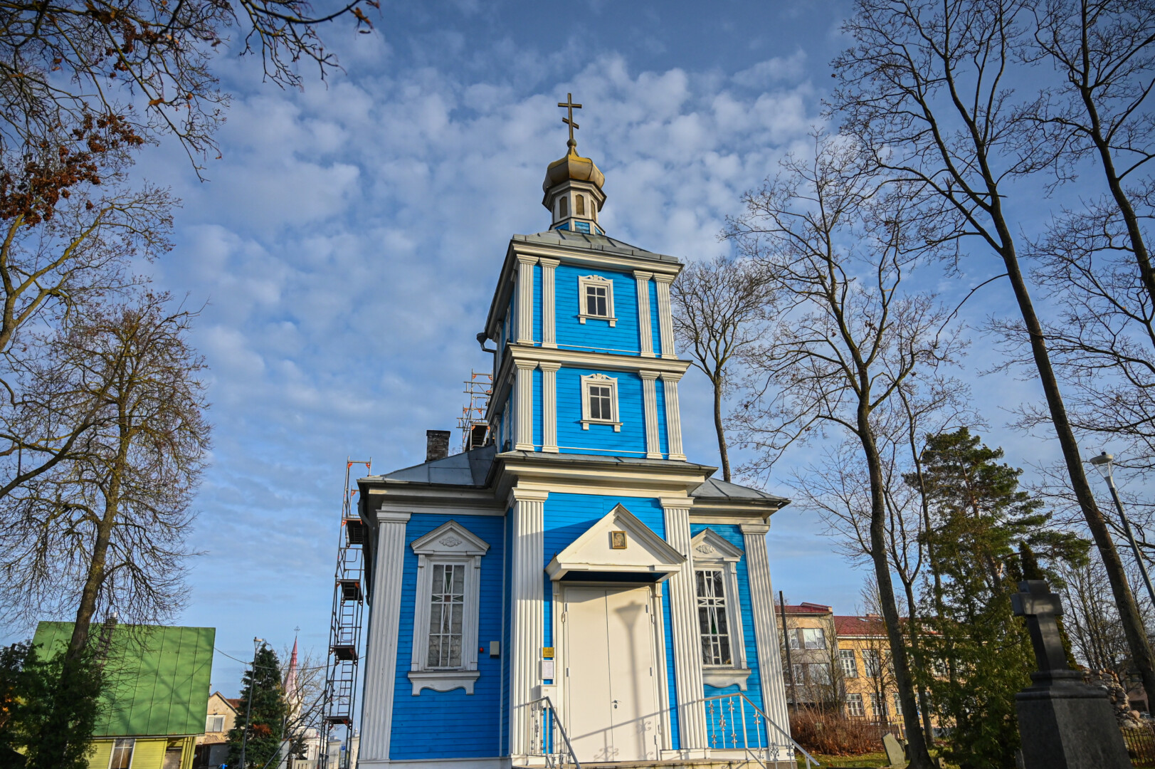 Kultūros paveldo objektu maždaug prieš dešimtmetį pripažintą stačiatikių Viešpaties Prisikėlimo cerkvę Panevėžyje apjuosė statybiniai pastoliai.