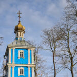 Panevėžio centre, J. Tilvyčio gatvėje, stovinčios stačiatikių Viešpaties Prisikėlimo cerkvės kupolas sutvisko auksu.