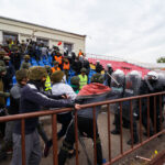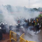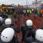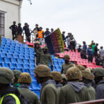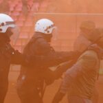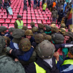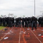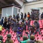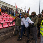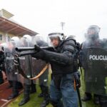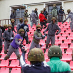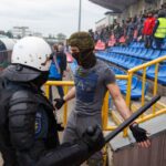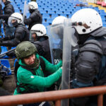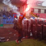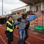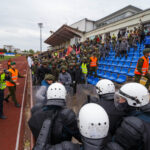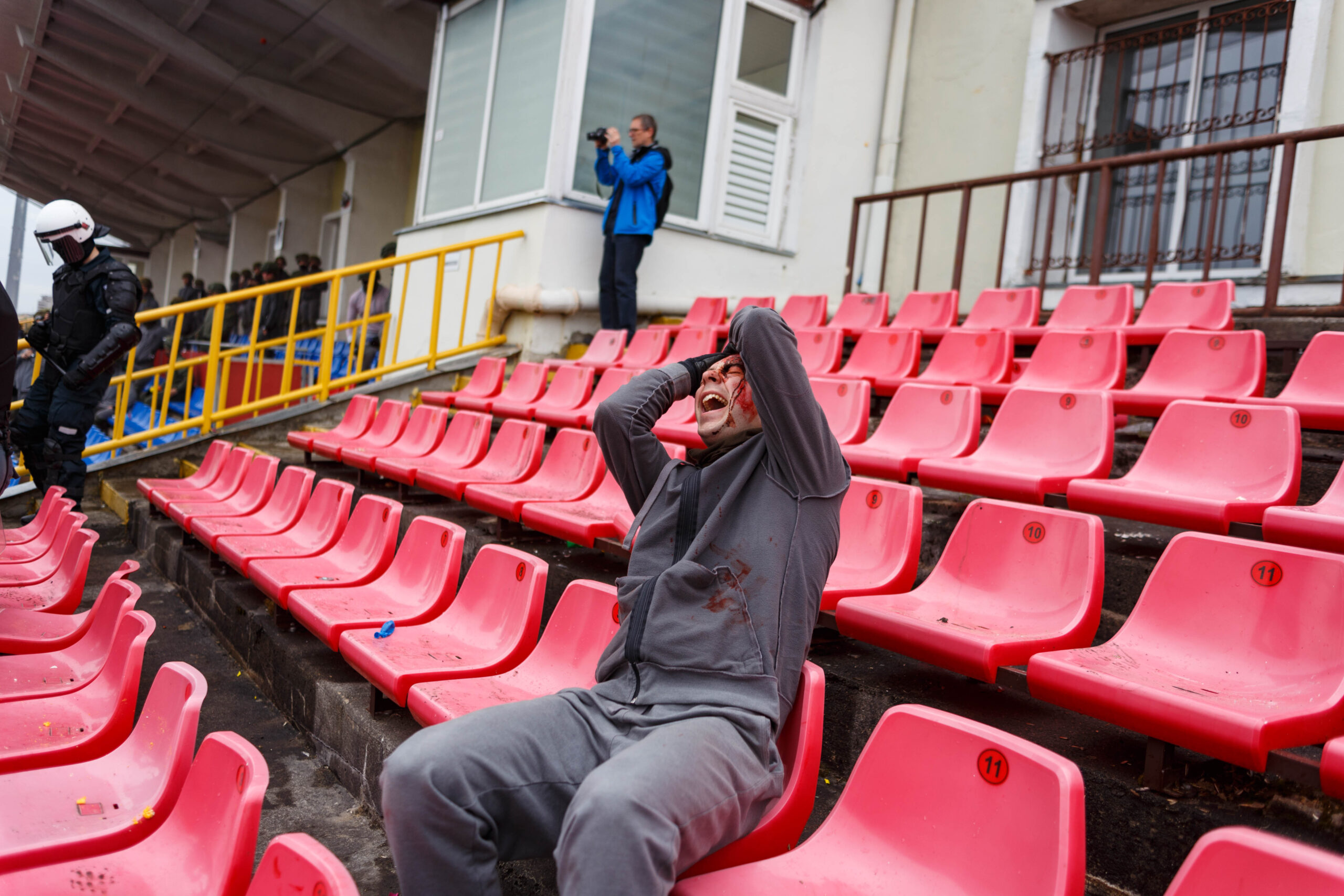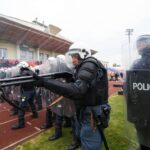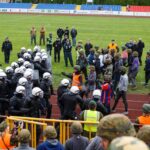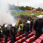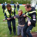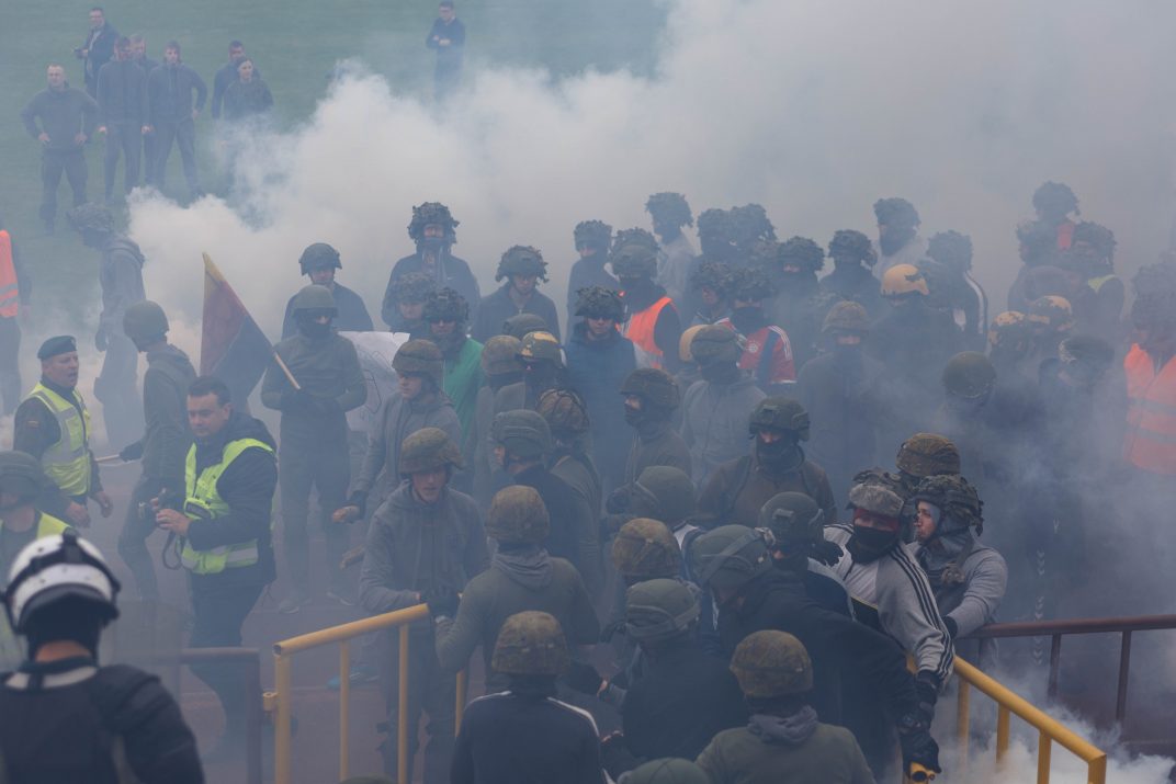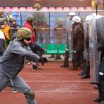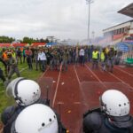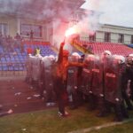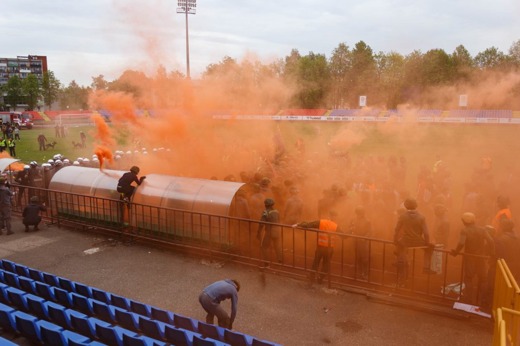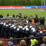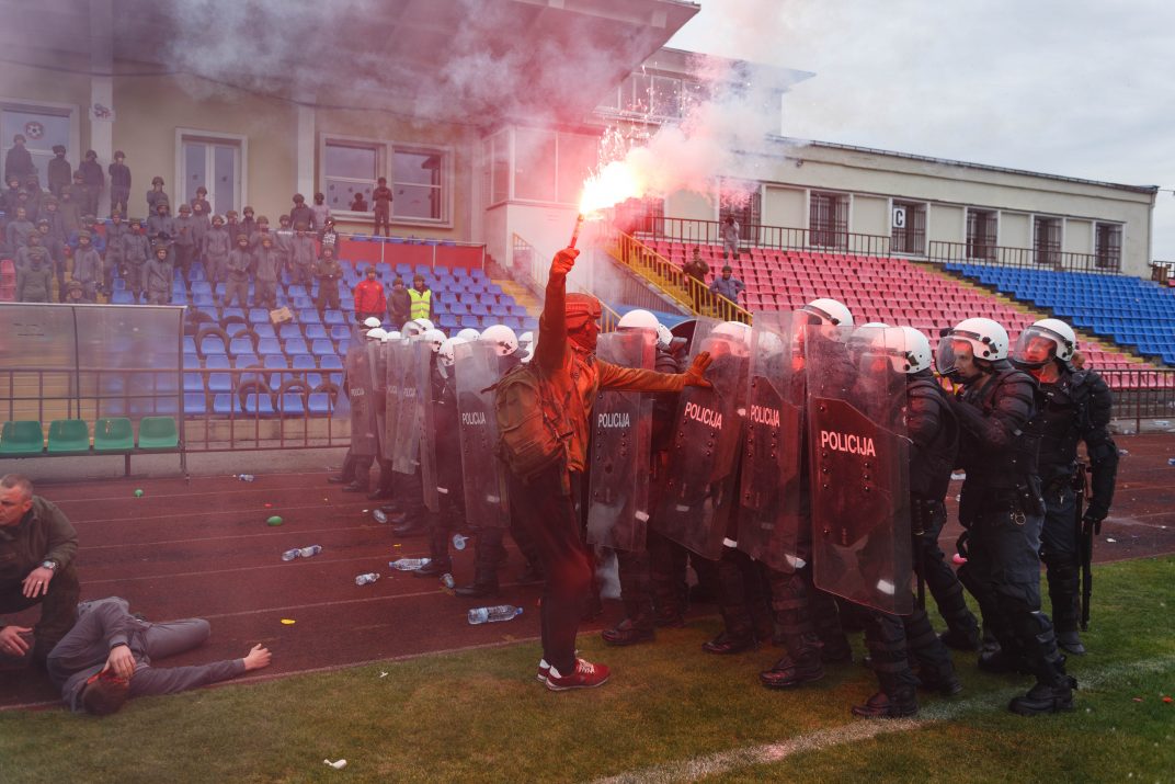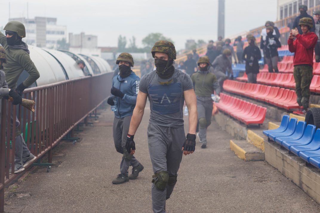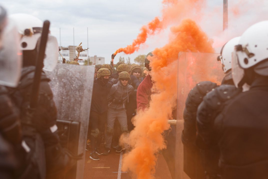 Penktadienio rytą sustiprintos policijos pareigūnų ir kitų tarnybų pajėgos skubėjo į „Aukštaitijos“ stadione prasidėjusias futbolo sirgalių riaušes. Čia mokymuose, inscenizuodami galimą situaciją, susirėmė Karaliaus Mindaugo husarų bataliono kariai ir Panevėžio apskrities VPK pareigūnai.