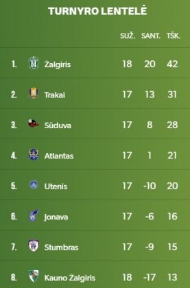 Vilniaus „Žalgirio“ futbolininkai lieka A lygos, viršūnėje per 18 mačų surinkę 42 taškus, bet vėl gavo sprigtą nuo komandos, kurios pavadinimą sostinės klubo vadovai pastaraisiais metais vis bandė užginčyti teismuose.