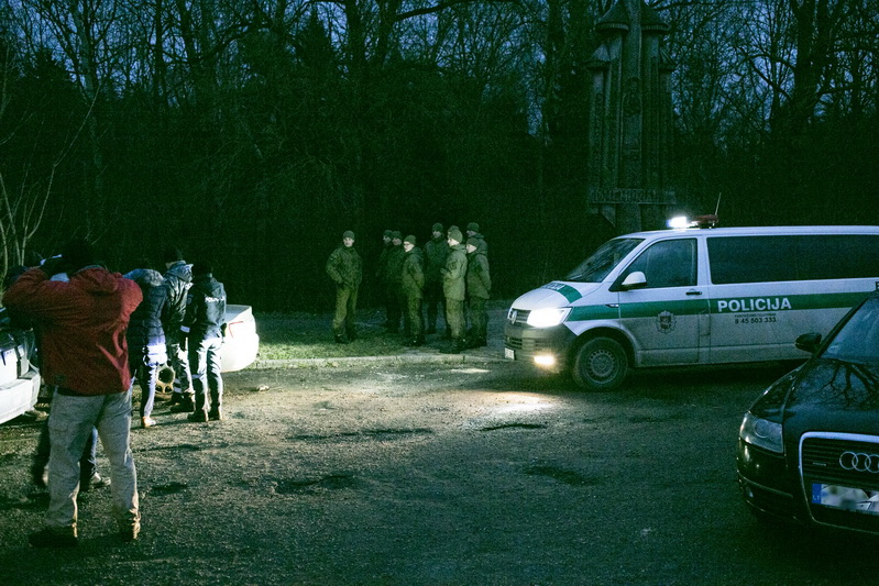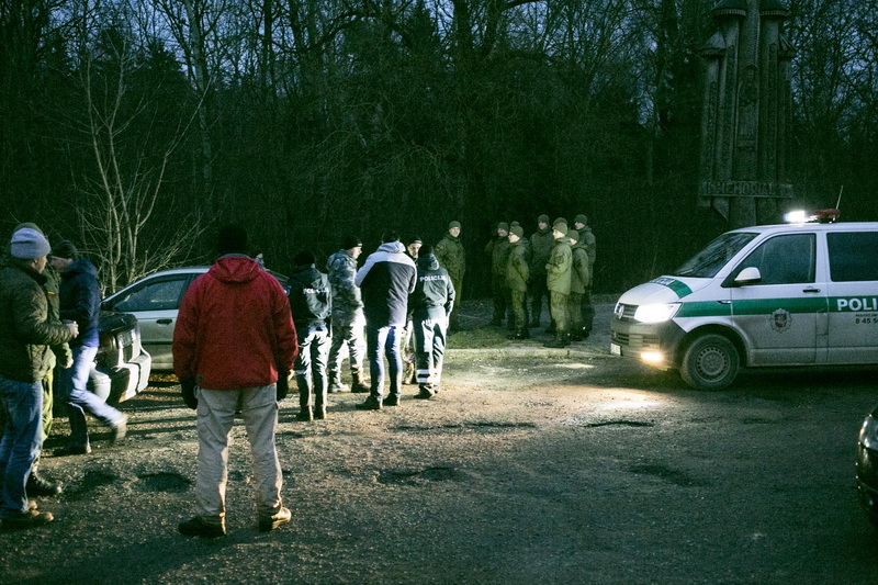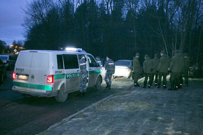 Trečiadienio pavakare gausios kareivių ir policijos pareigūnų pajėgos šukavo Staniūnų miškelio bei Skaistakalnio parko prieigas.
