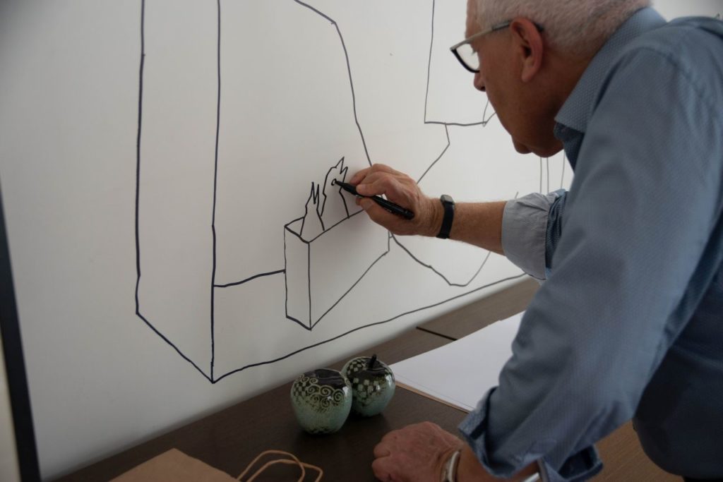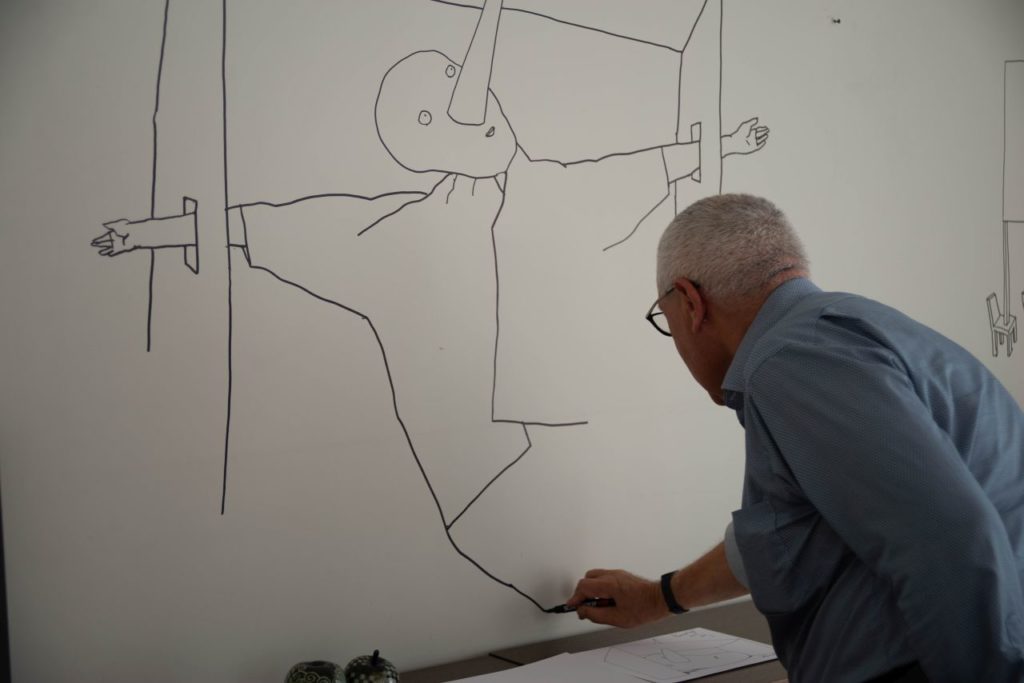 Direktoriaus kabinete ant sienos menininkas tradiciškai nupiešė naują piešinį.