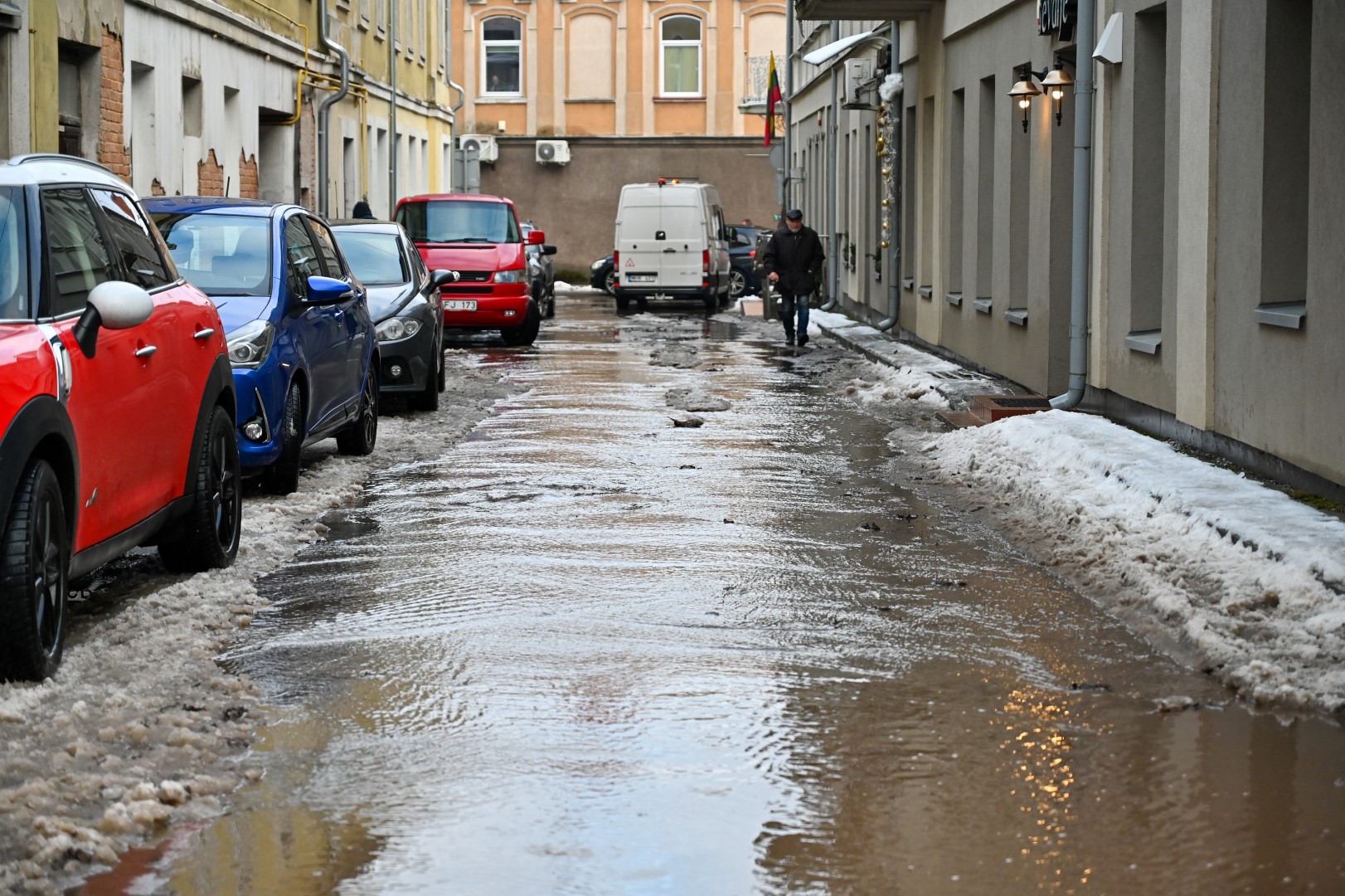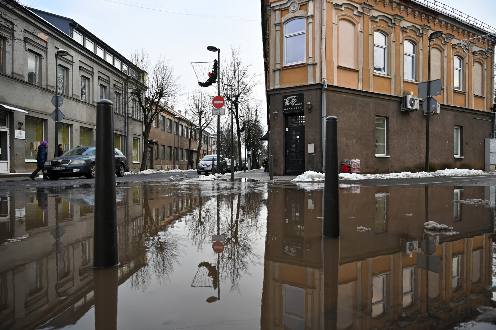 Panevėžio centre ketvirtadienį ilgų aulinių prireikė ne dėl tirpstančio sniego.