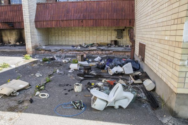 Tas pats kvapas lydėjo ir link benamių pamėgtų profilaktoriumo balkonų. Po vienu jų sienos buvo gerokai aprūkusios. Po kitu gulėjo krūvos šlamšto, statybinių atliekų, o apie čia įsikūrusius gyventojus bylojo ant tvoros sudžiauti kilimai ir apklotai. Pačių šeimininkų jau nebebuvo.