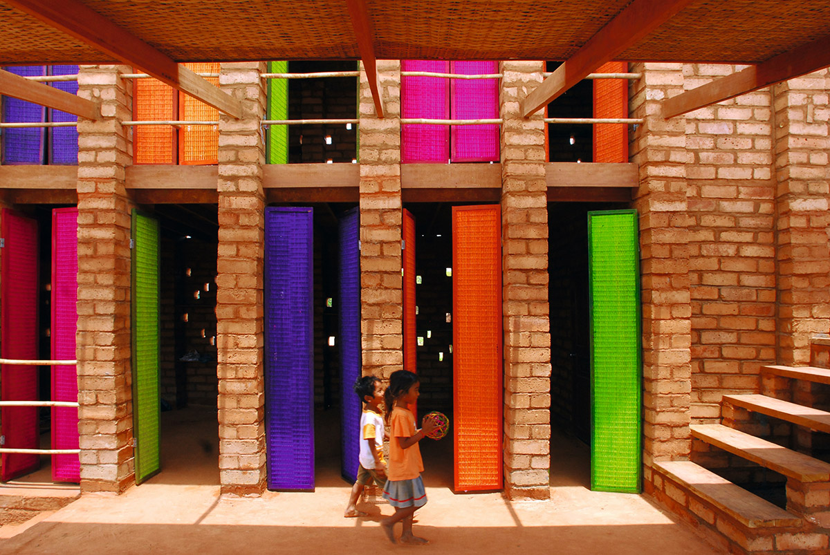 Kambodžos nevyriausybinės organizacijos „Blue Tent“ įkurtame centre vargingai gyvenantys žmonės buriami į bendruomenę ir mokomi užsidirbti pragyvenimui. Svarbiausias naudojamas metodas – darbas kartu, tikslas – tvaraus verslo plėtojimas. Mokykla yra atvira, o dėl vietoje randamo dirvožemio, naudoto jos statybose, tvieskia skaisčia raudona spalva.
