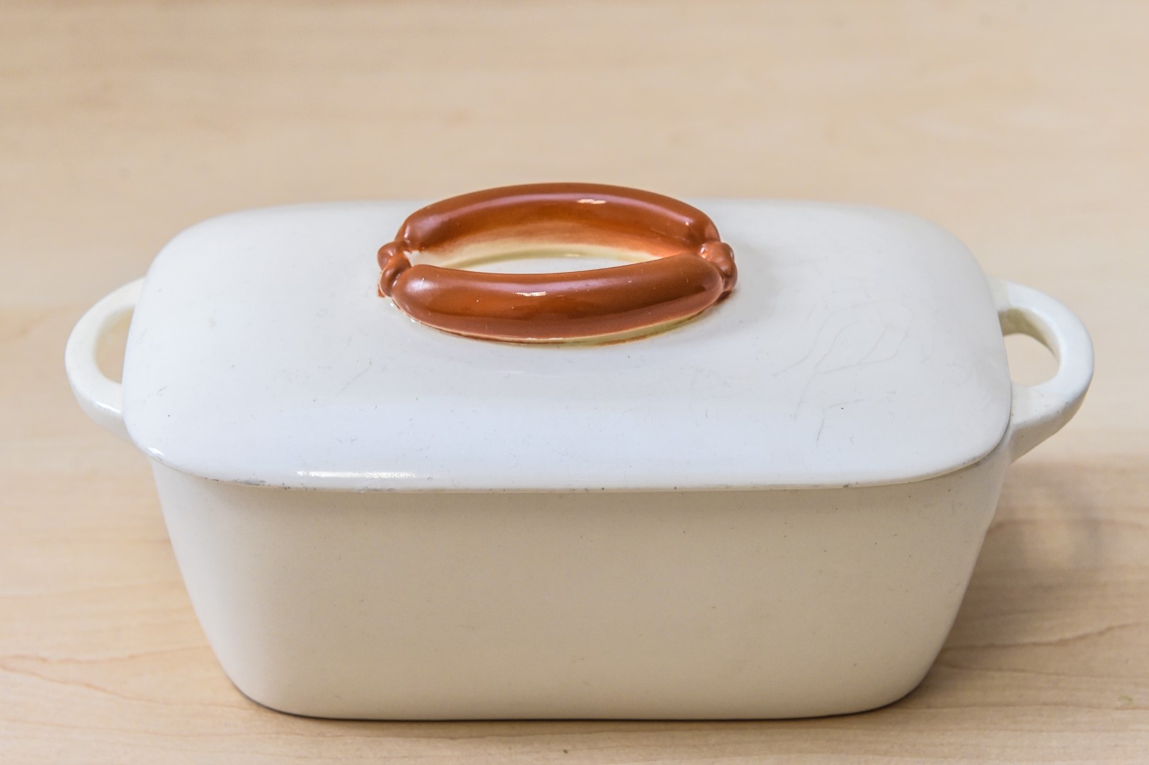 Dar vienas muziejui restauruotas indas – gana neįprastas. Tai – XX amžiaus pirmos pusės fajansinis indas su dangteliu dešrelėms.